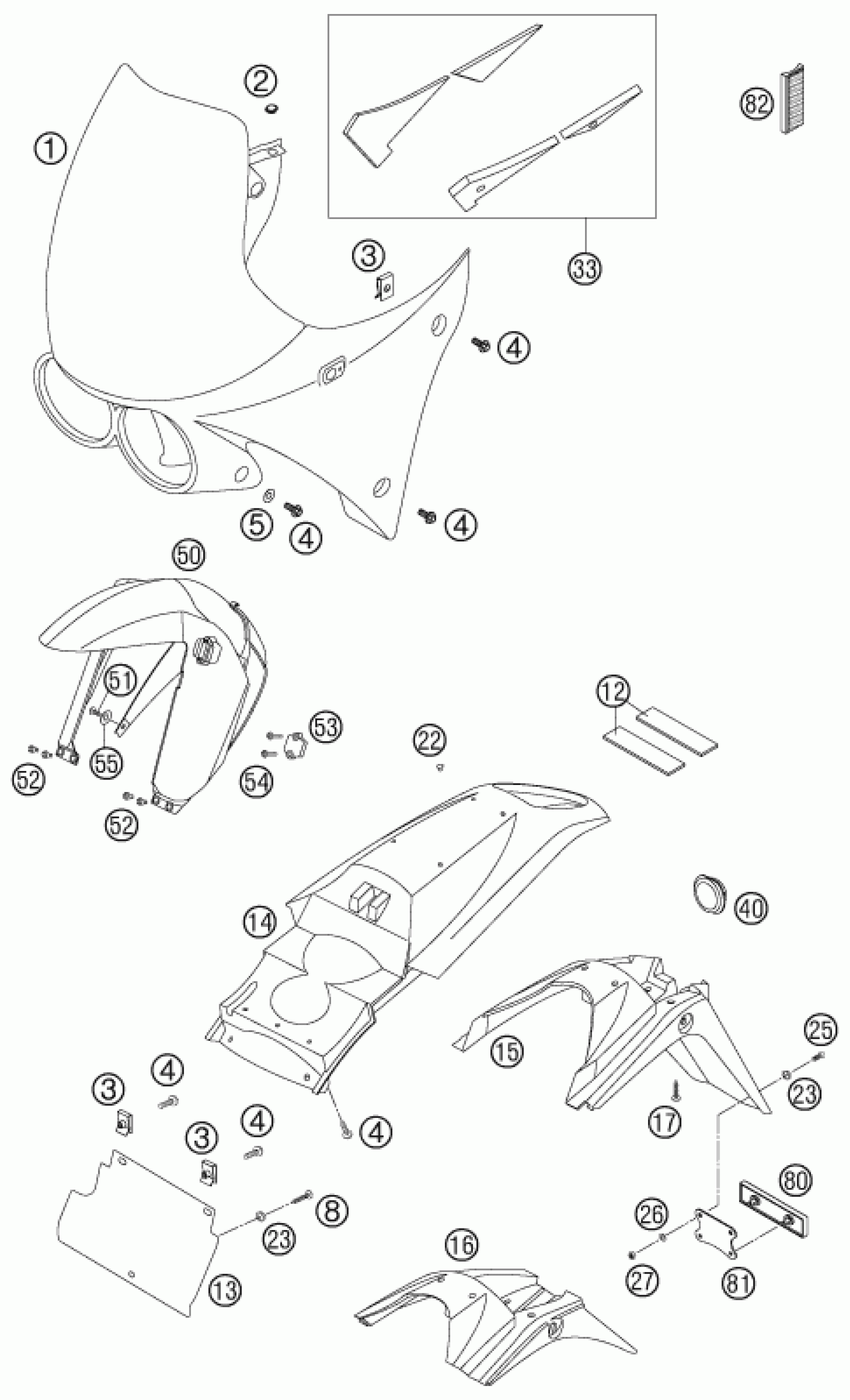 KTM 640 ADVENTURE 2007 MASK, FENDERS Diagram