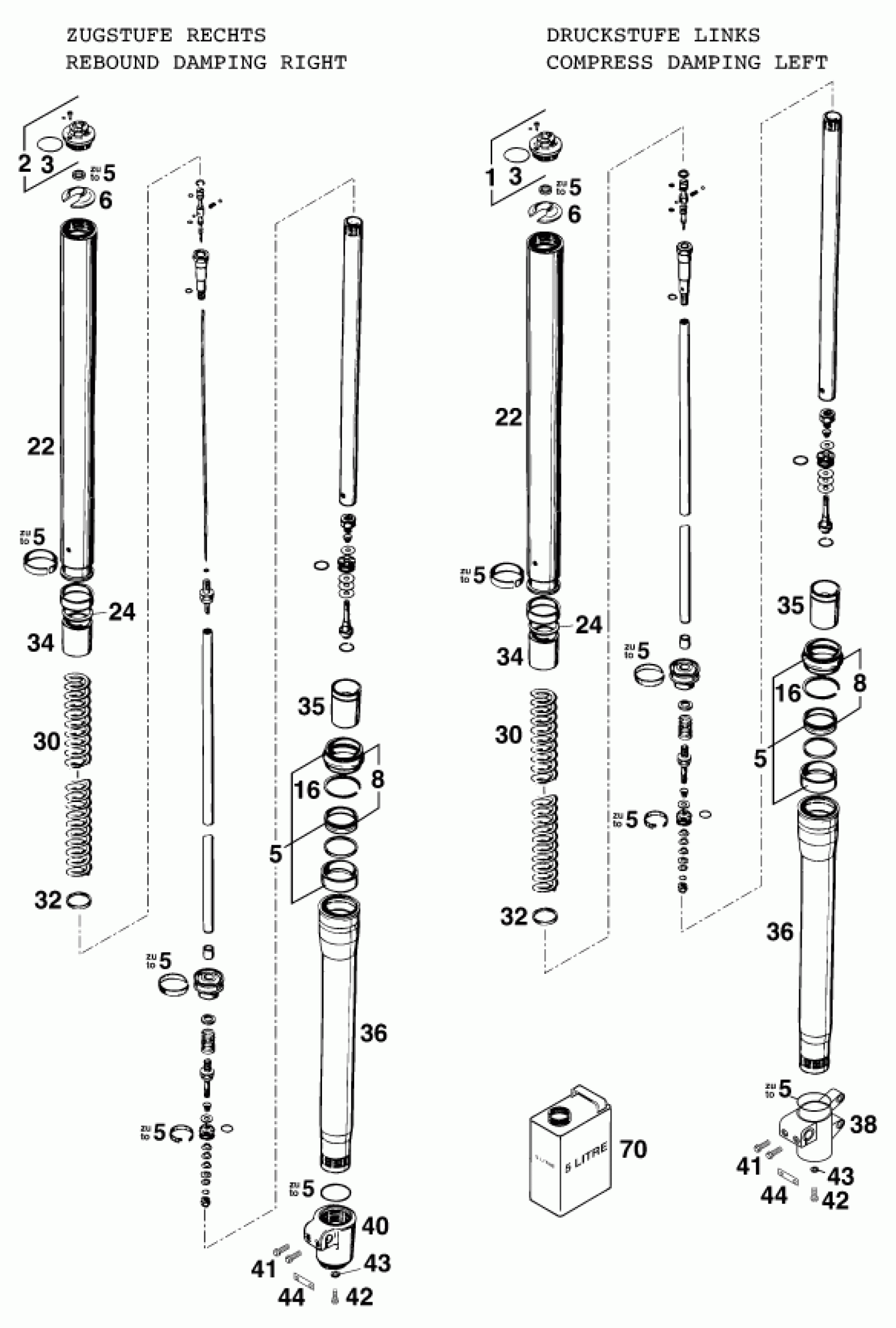 KTM 640 ADVENTURE-R <1999 FRONT FORK DISASSEMBLED Diagram