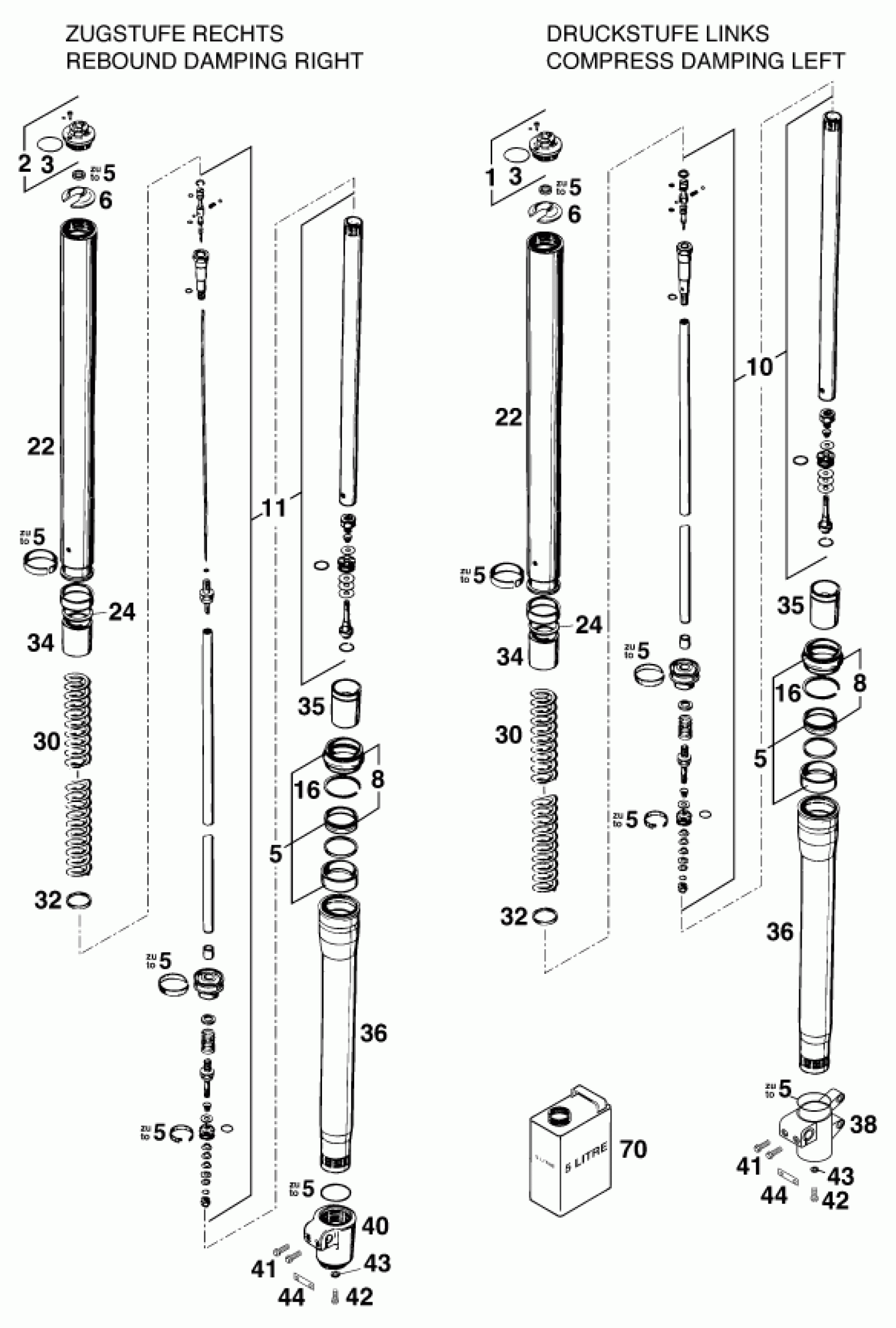 KTM 640 ADVENTURE-R D <1998 FRONT FORK DISASSEMBLED Diagram