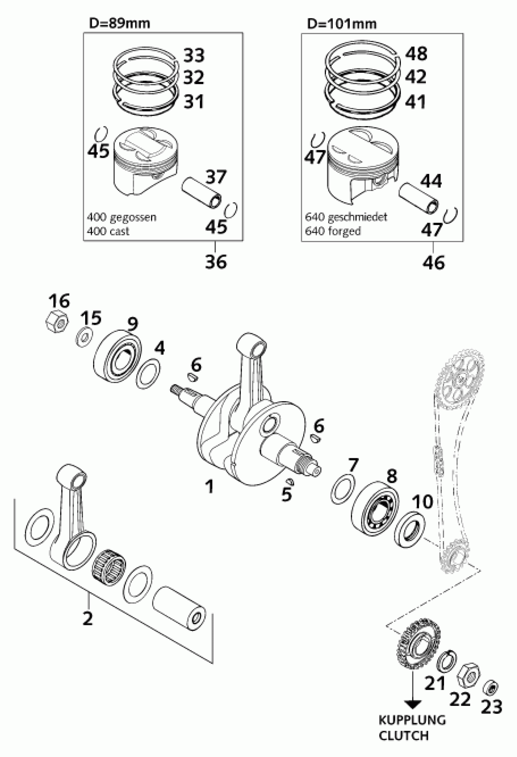 KTM 640 DUKE II 2000 CRANKSHAFT, PISTON Diagram