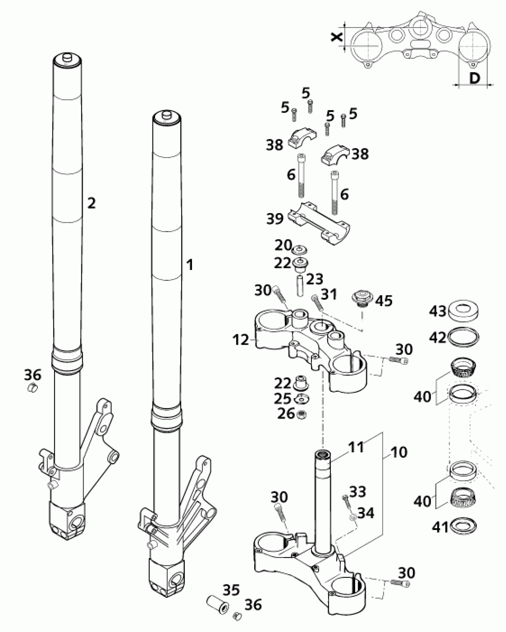 FRONT FORK, TRIPLE CLAMP
