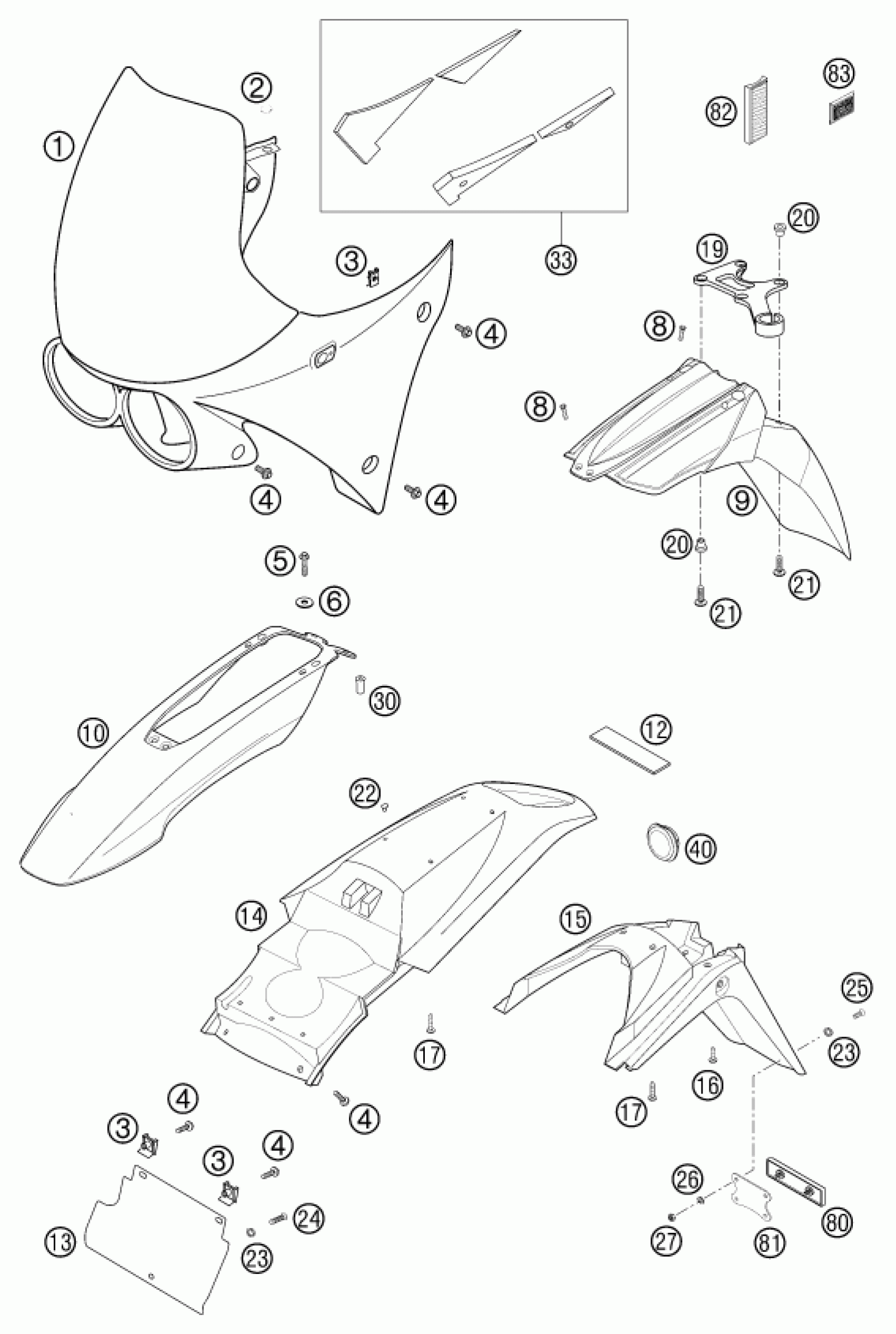 KTM 640 LC4 ADVENTURE 2003 MASK, FENDERS Diagram