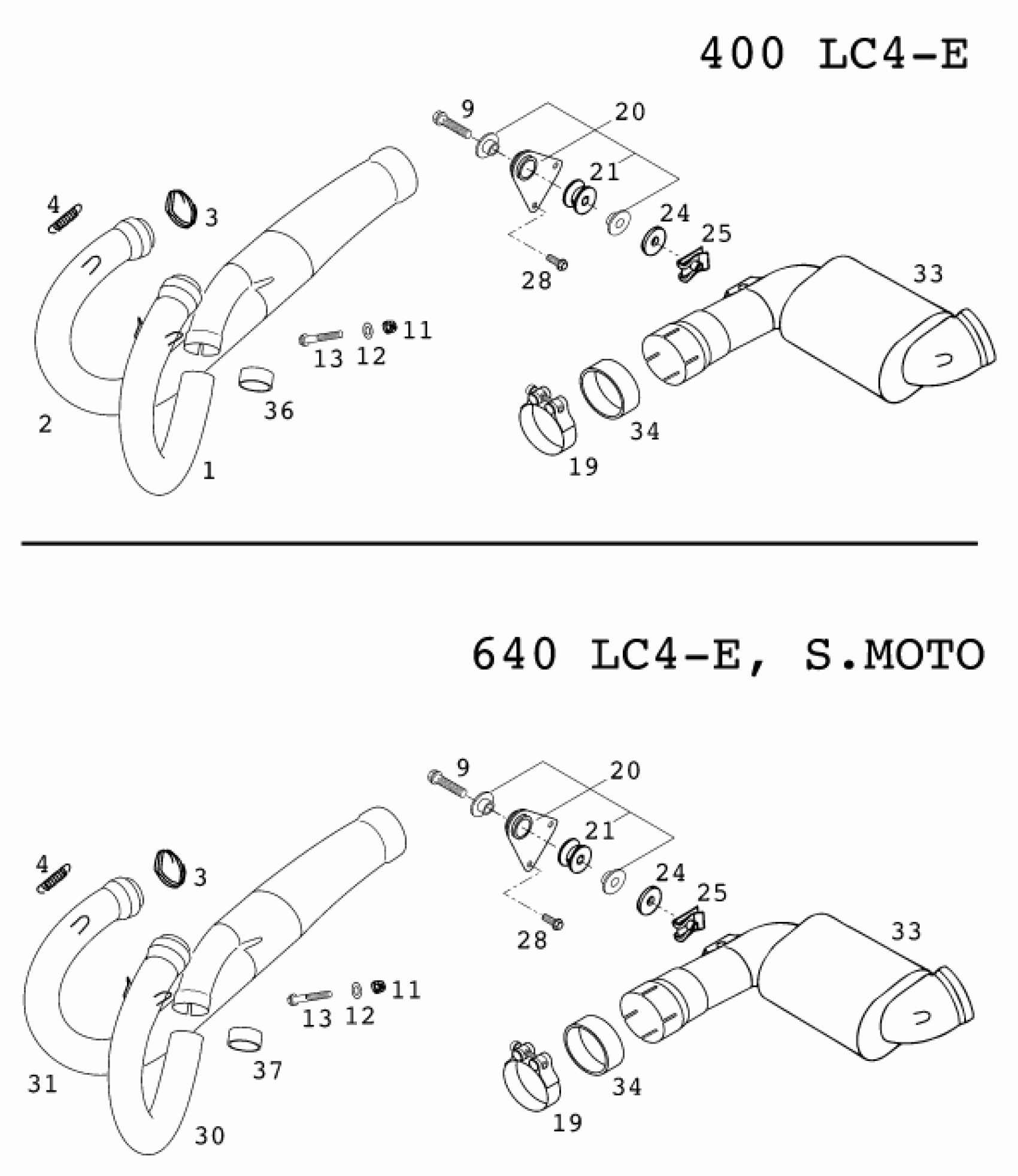 KTM 640 LC4-E Super-Moto 2000 EXHAUST SYSTEM Diagram