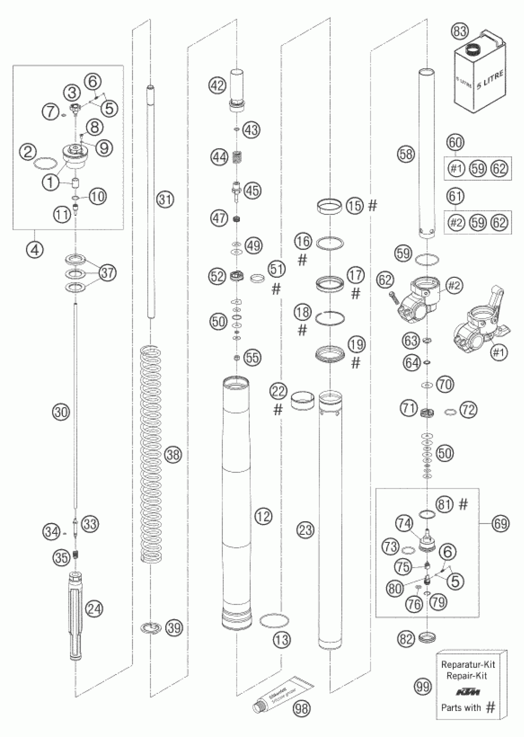 KTM 640 LC4 ENDURO ORANGE 2005 FRONT FORK DISASSEMBLED Diagram