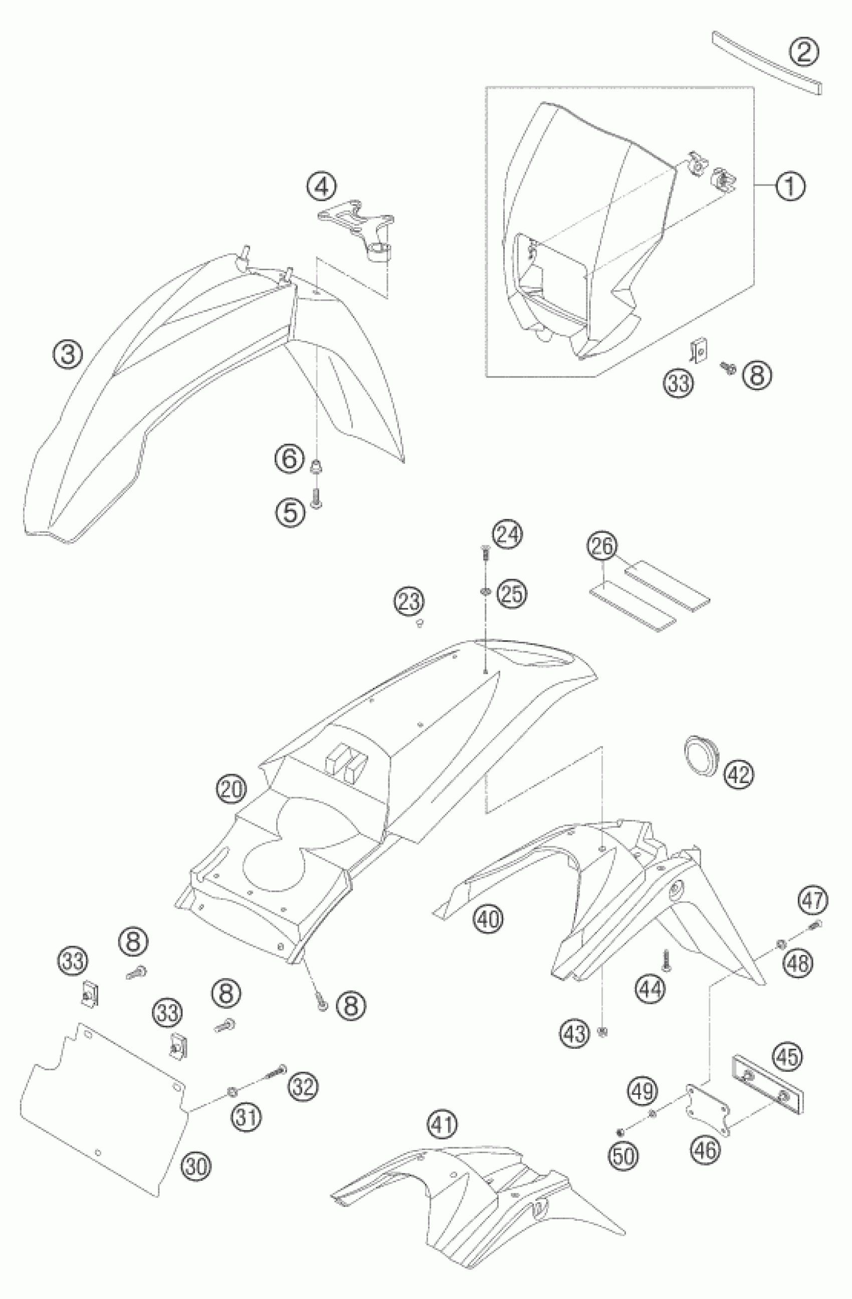 KTM 640 LC4 ENDURO ORANGE 2005 MASK, FENDERS Diagram