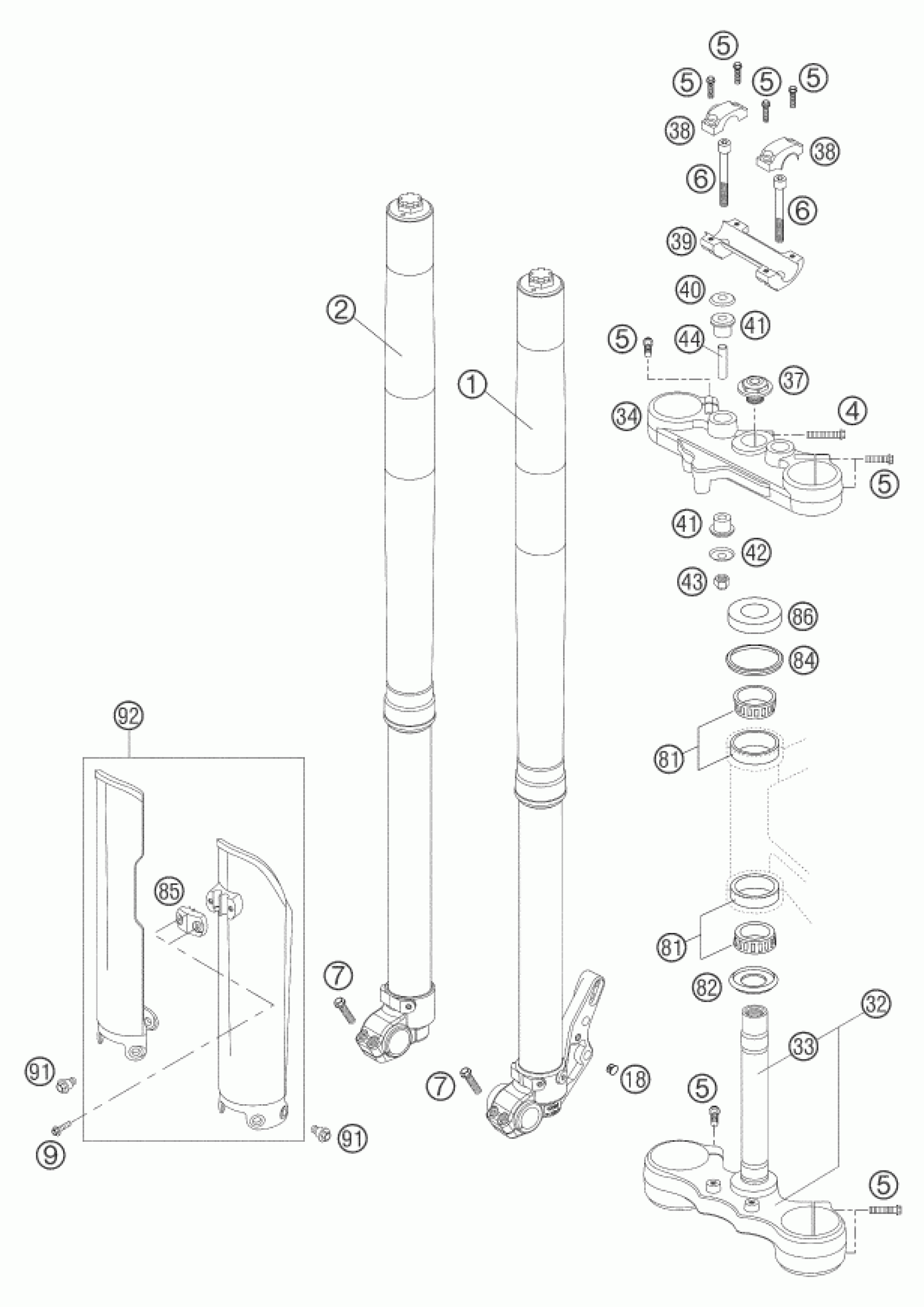 FRONT FORK, TRIPLE CLAMP