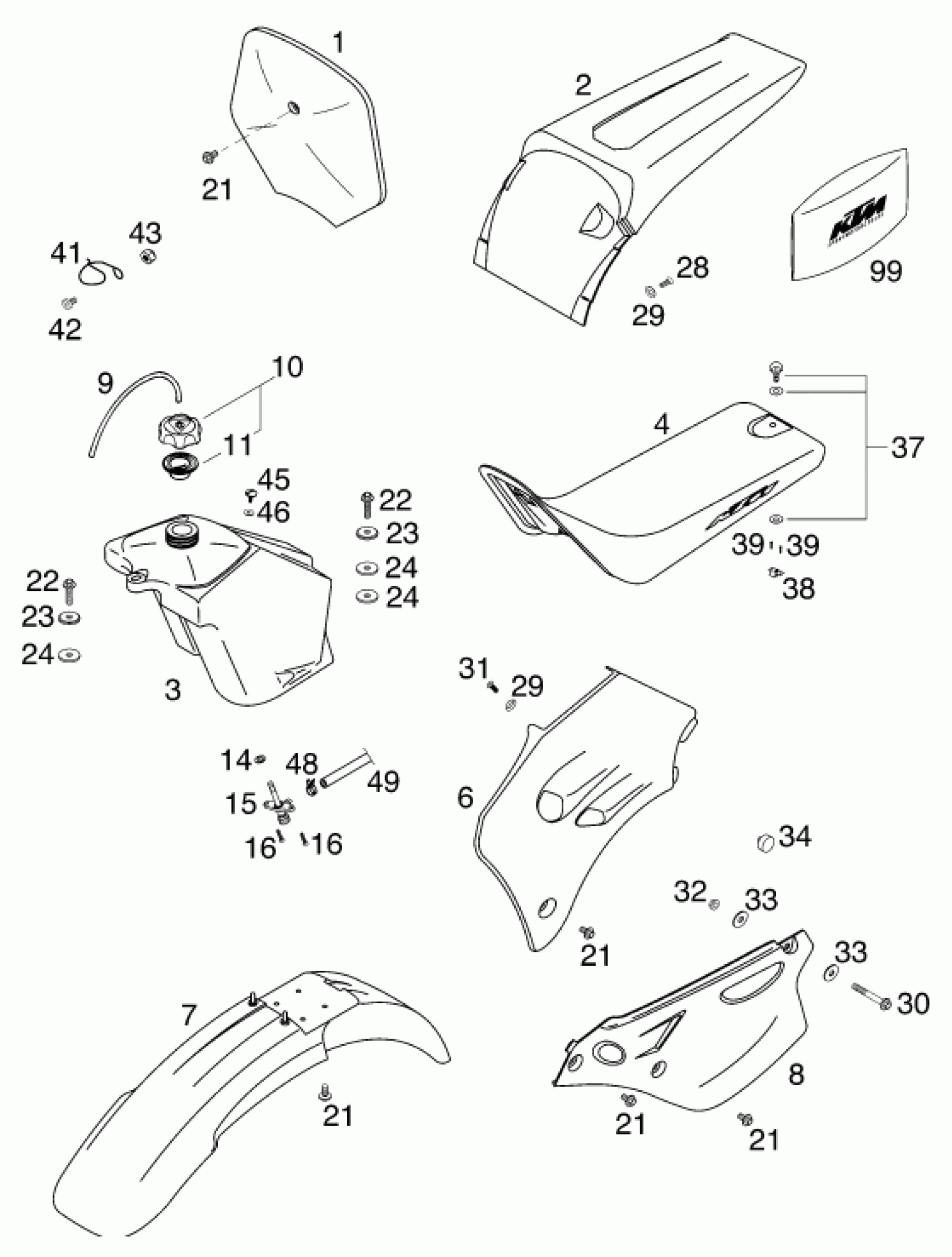 KTM 65 SX 2000 TANK, SEAT Diagram