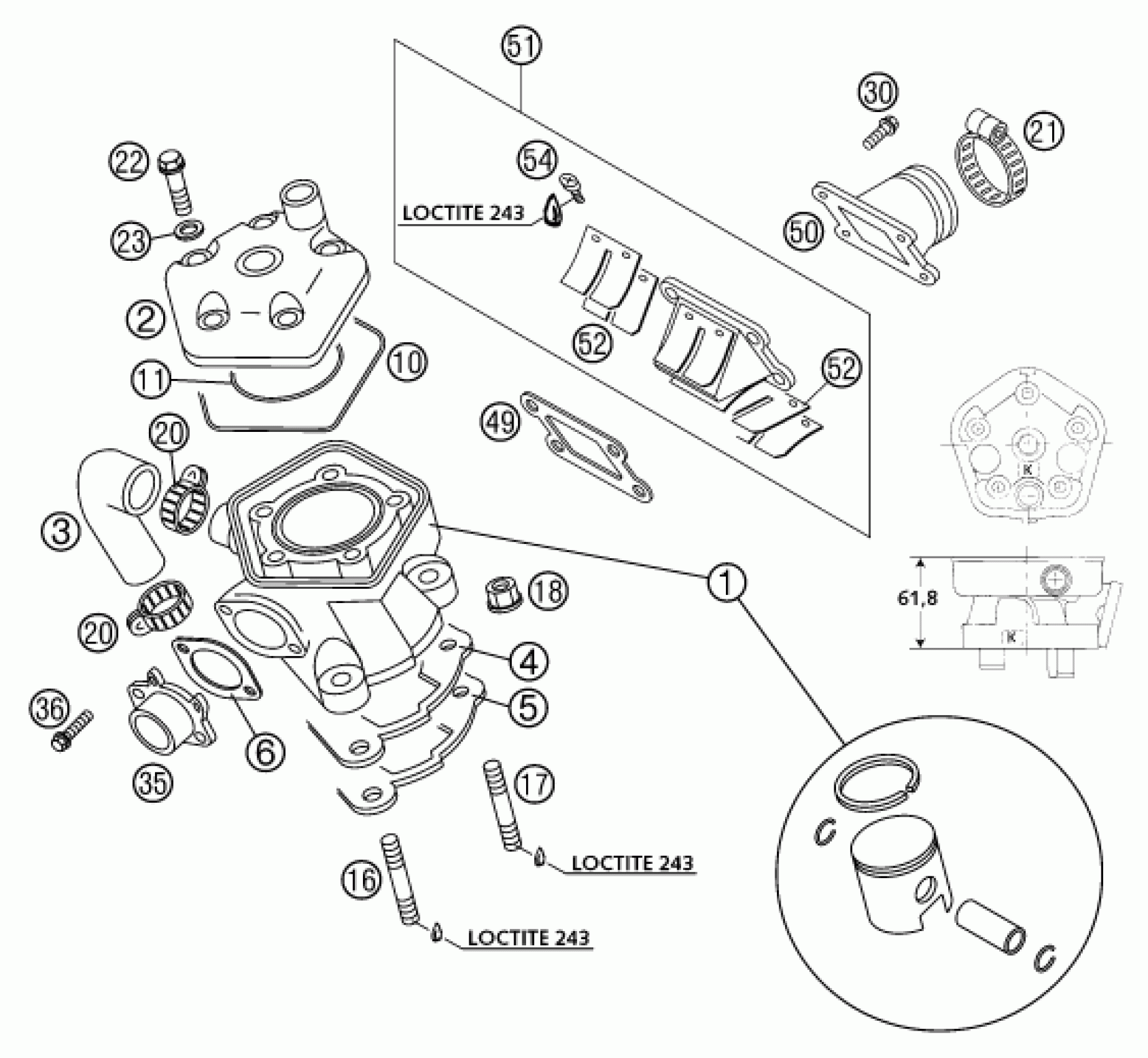 KTM 65 SX 2002 CYLINDER, CYLINDER HEAD Diagram