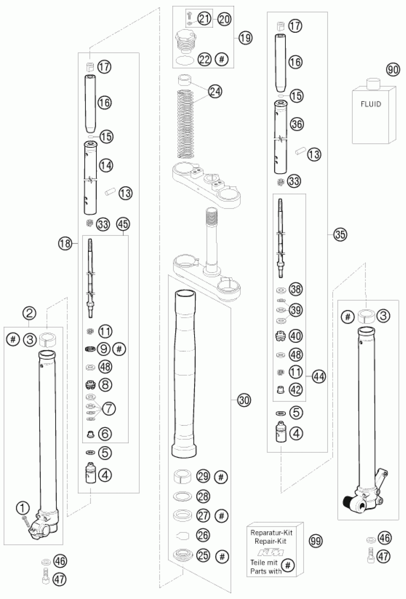 KTM 65 SX 2008 FRONT FORK DISASSEMBLED Diagram