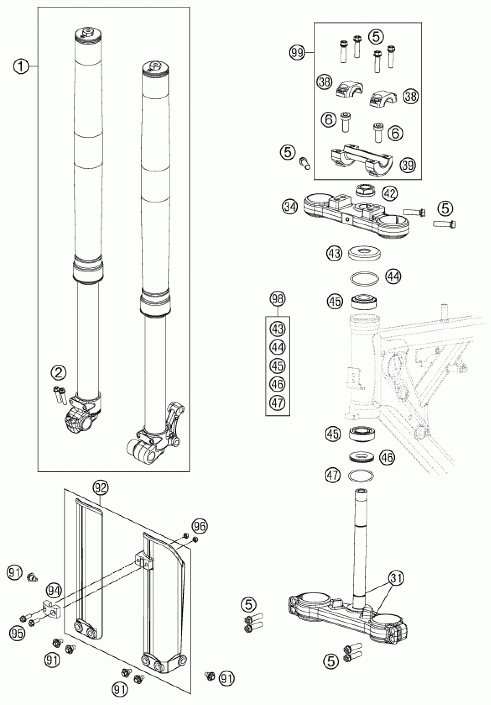 FRONT FORK, TRIPLE CLAMP