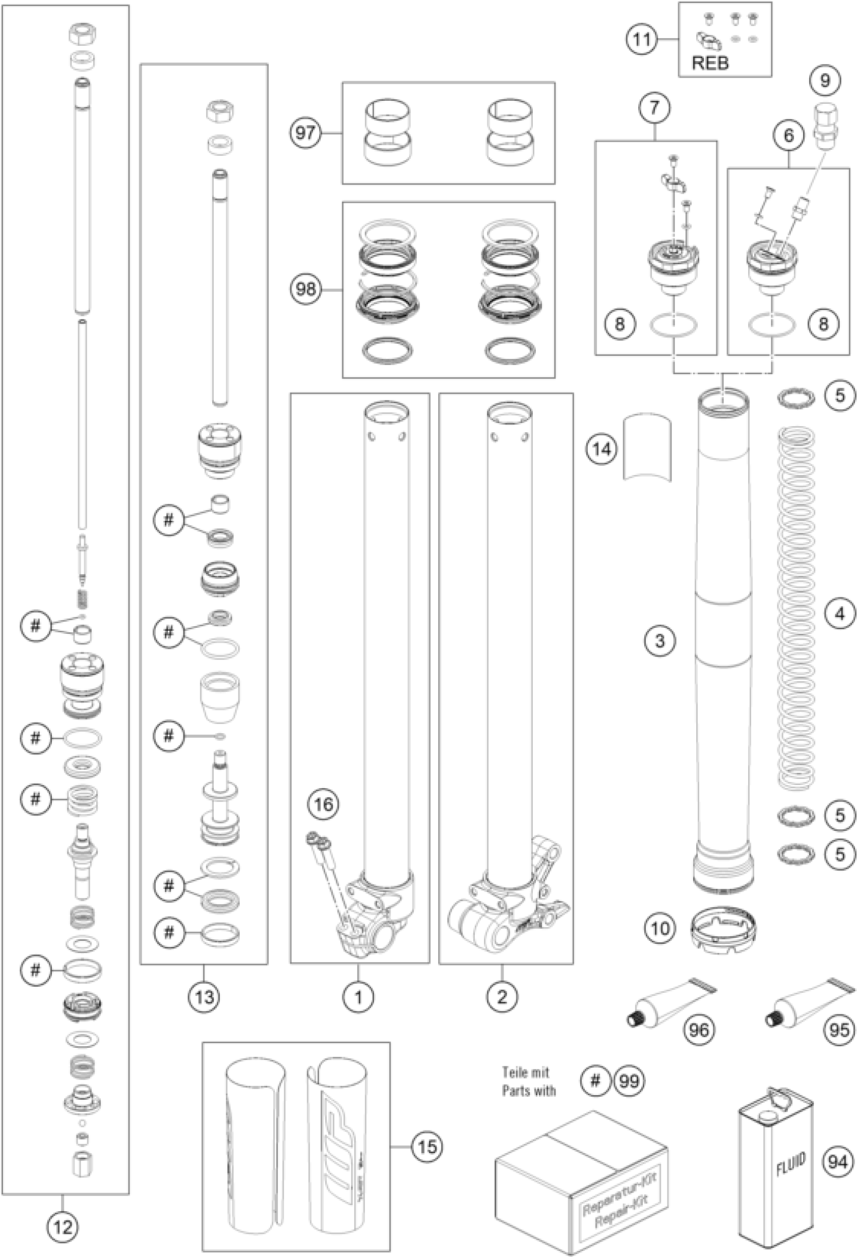 KTM 65 SX 2023 FRONT FORK DISASSEMBLED Diagram