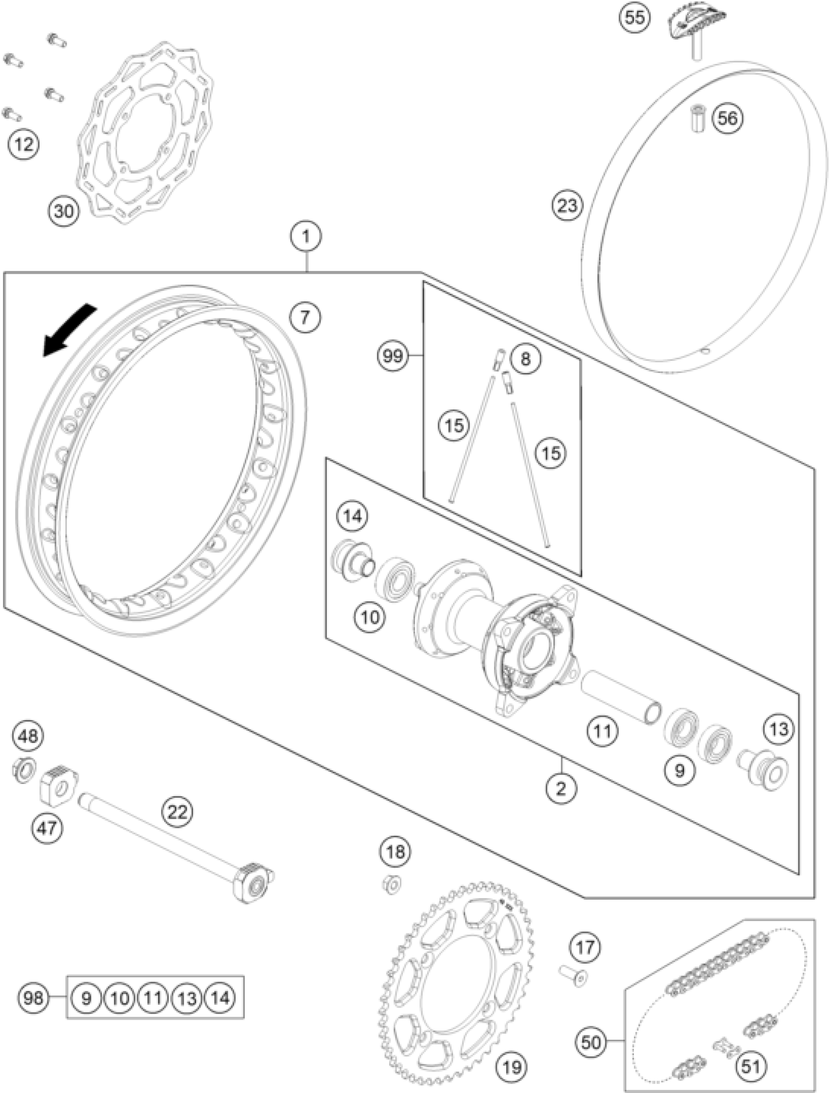 KTM 65 SX 2025 REAR WHEEL Diagram