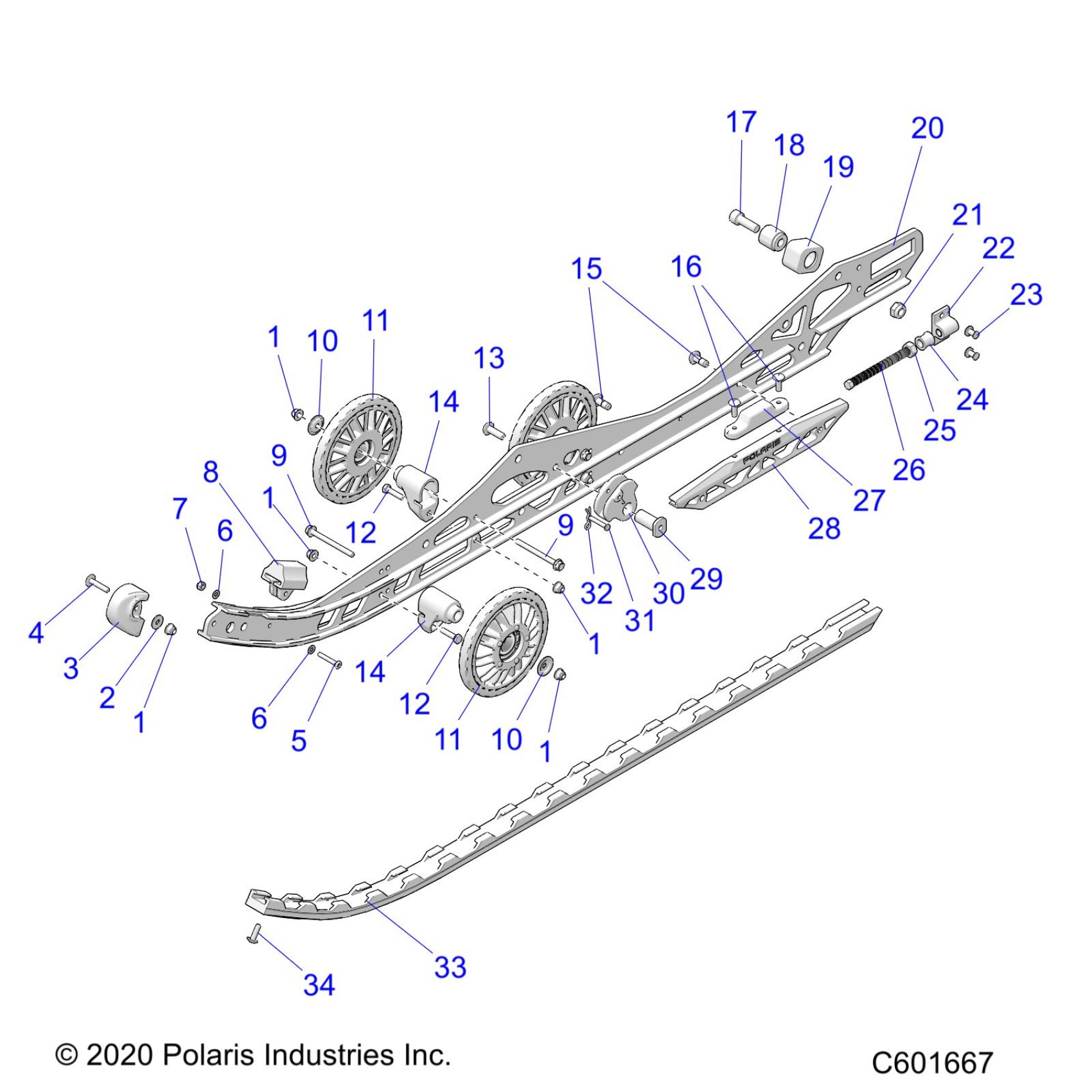 Polaris 650 MATRYX INDY VR1 129 ALL OPTIONS (R01) - S22TKV6RS SUSPENSION, RAIL BEAM LH/RH - S22TKV6RS ALL OPTIONS (C601667) Diagram