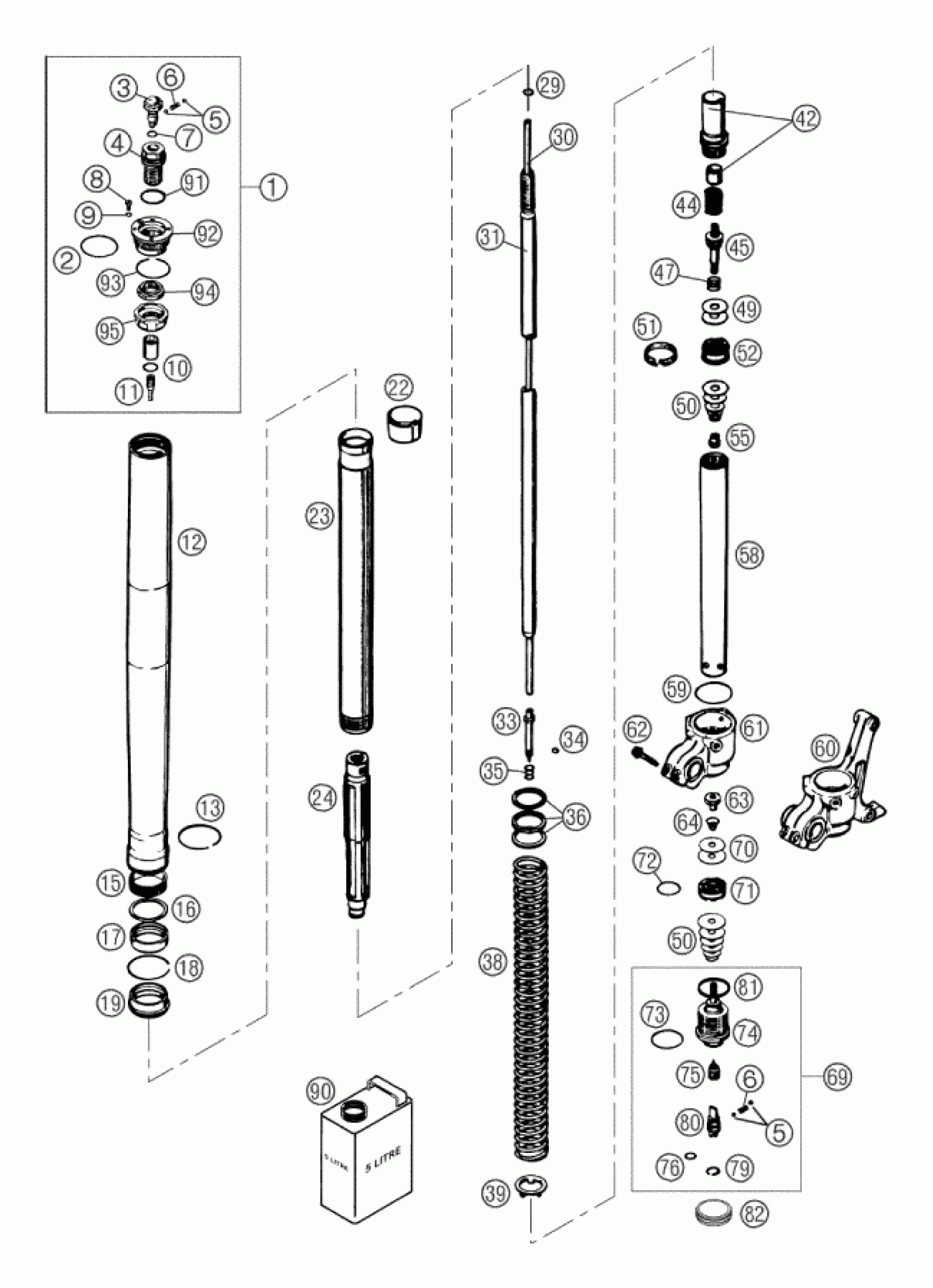 KTM 660 RALLYE 2002 FRONT FORK DISASSEMBLED Diagram