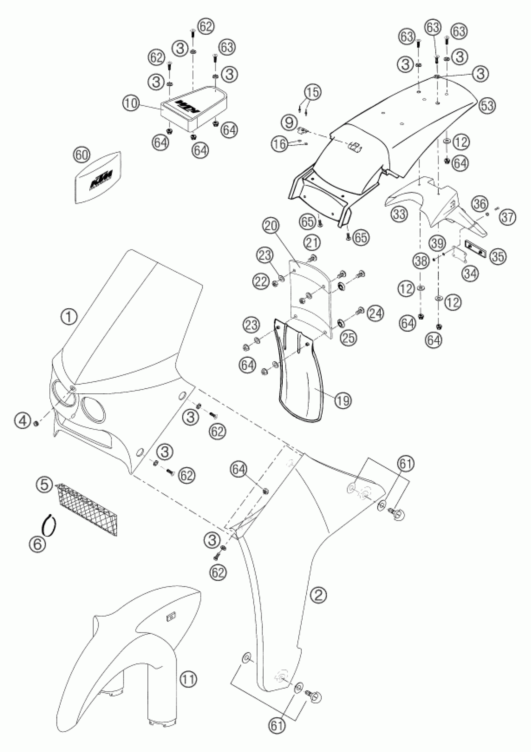 KTM 660 RALLYE FACTORY REPL. 2004 MASK, FENDERS Diagram