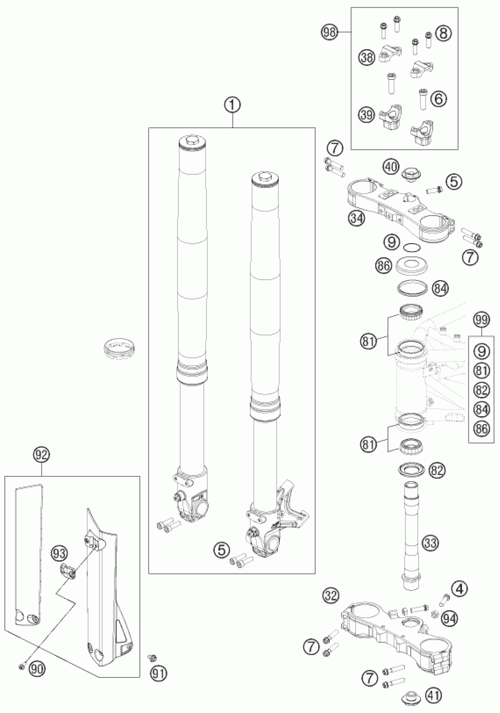 FRONT FORK, TRIPLE CLAMP