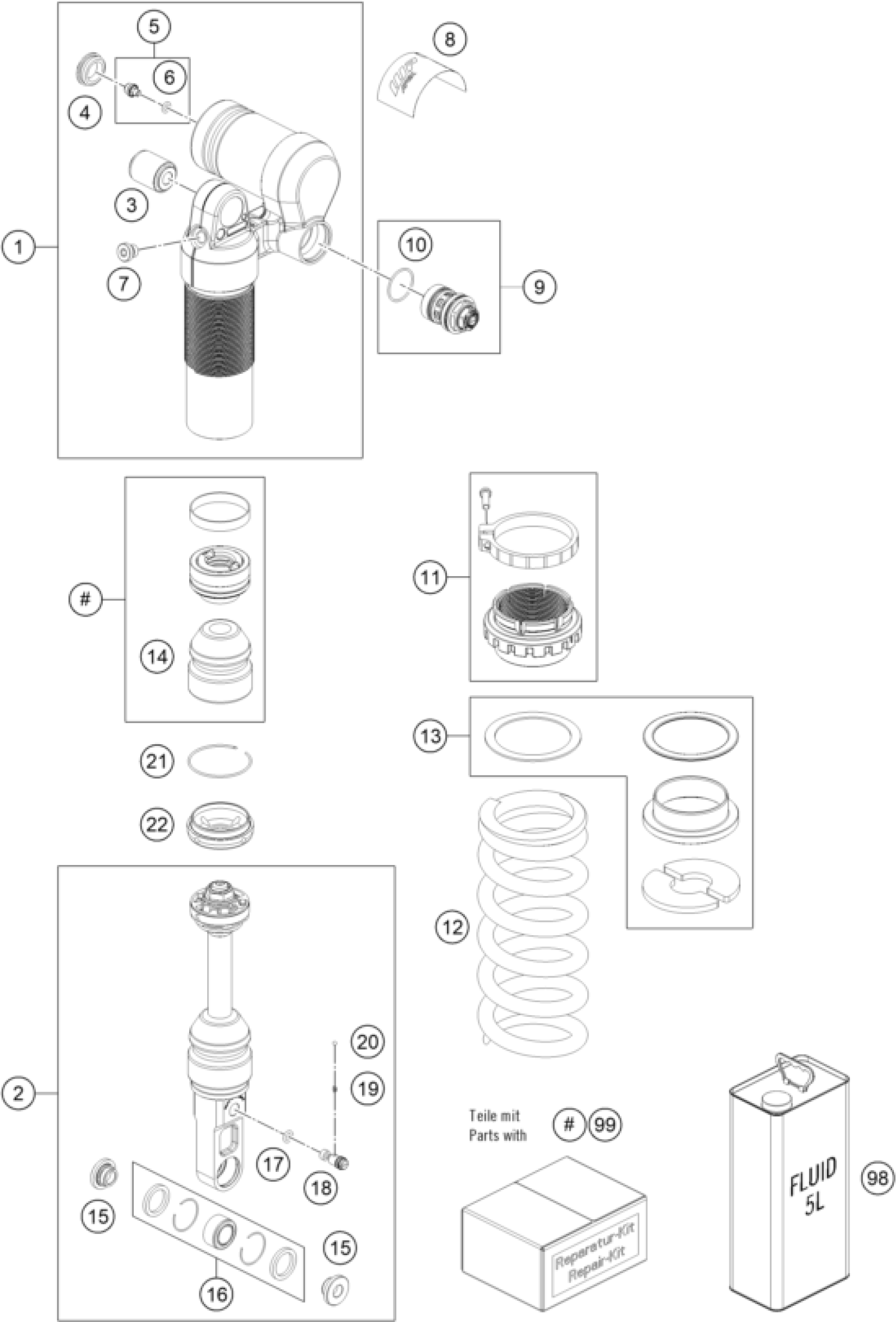 KTM 690 SMC R 2026 SHOCK ABSORBER DISASSEMBLED Diagram