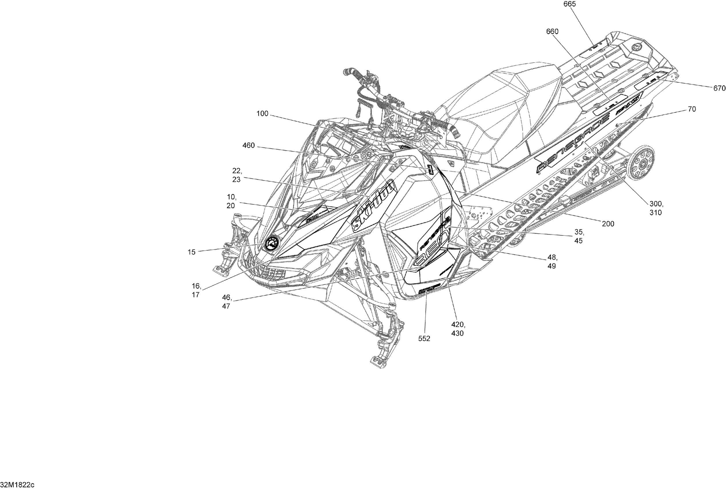 Ski-Doo RENEGADE 1200 4-TEC, 2018 Decals Renegade - 1200 4-TEC - Package Adrenaline Diagram