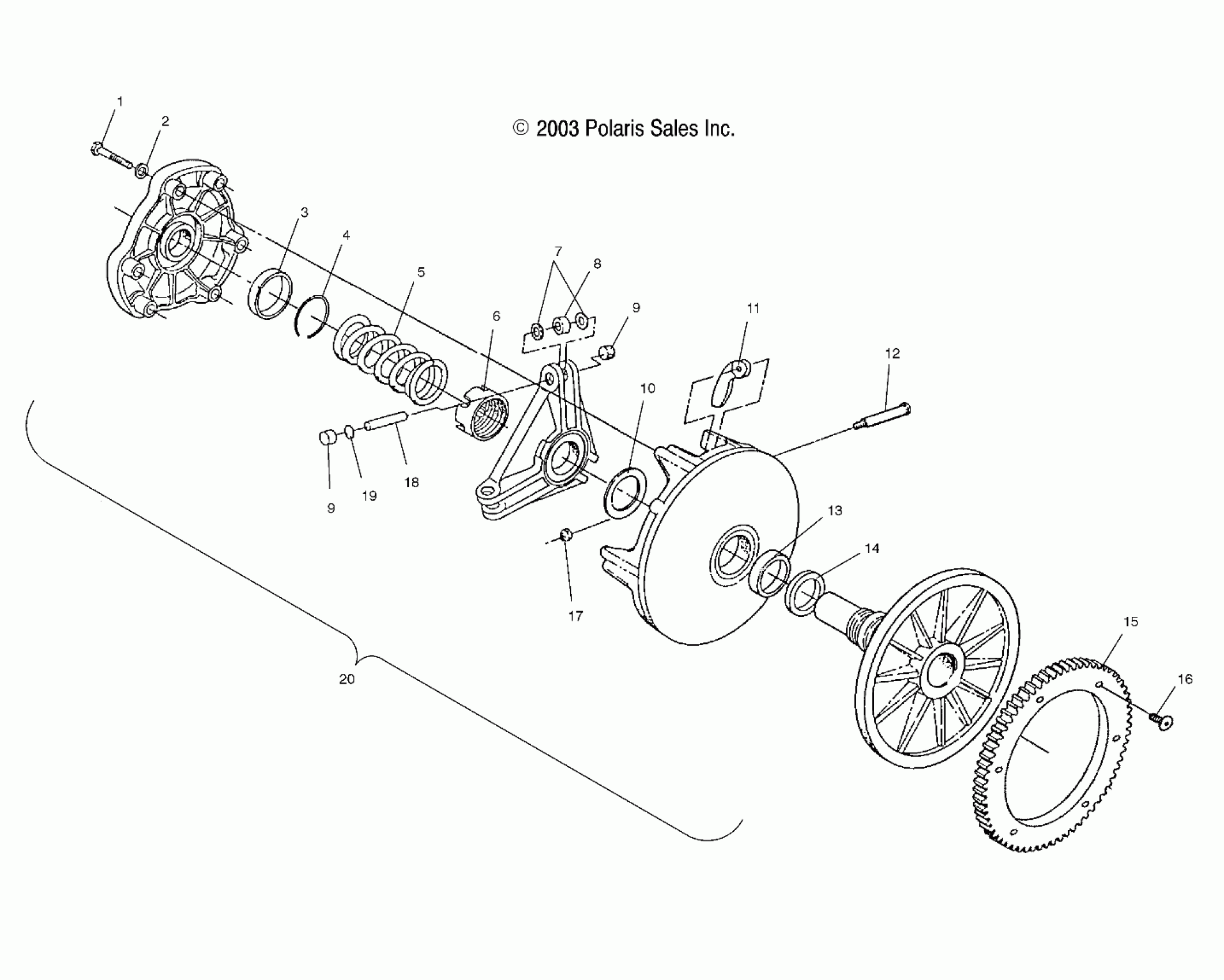 Polaris 700/800 XC EDGE F/O - S04NP7CS DRIVE CLUTCH (ELECTRIC START MODELS) - S04NP7CS/7CSA/7CSB/7CSC/8CS/8CSA/8CSB/8CSC-S04NE7CS/8CS (4988438843D04) Diagram