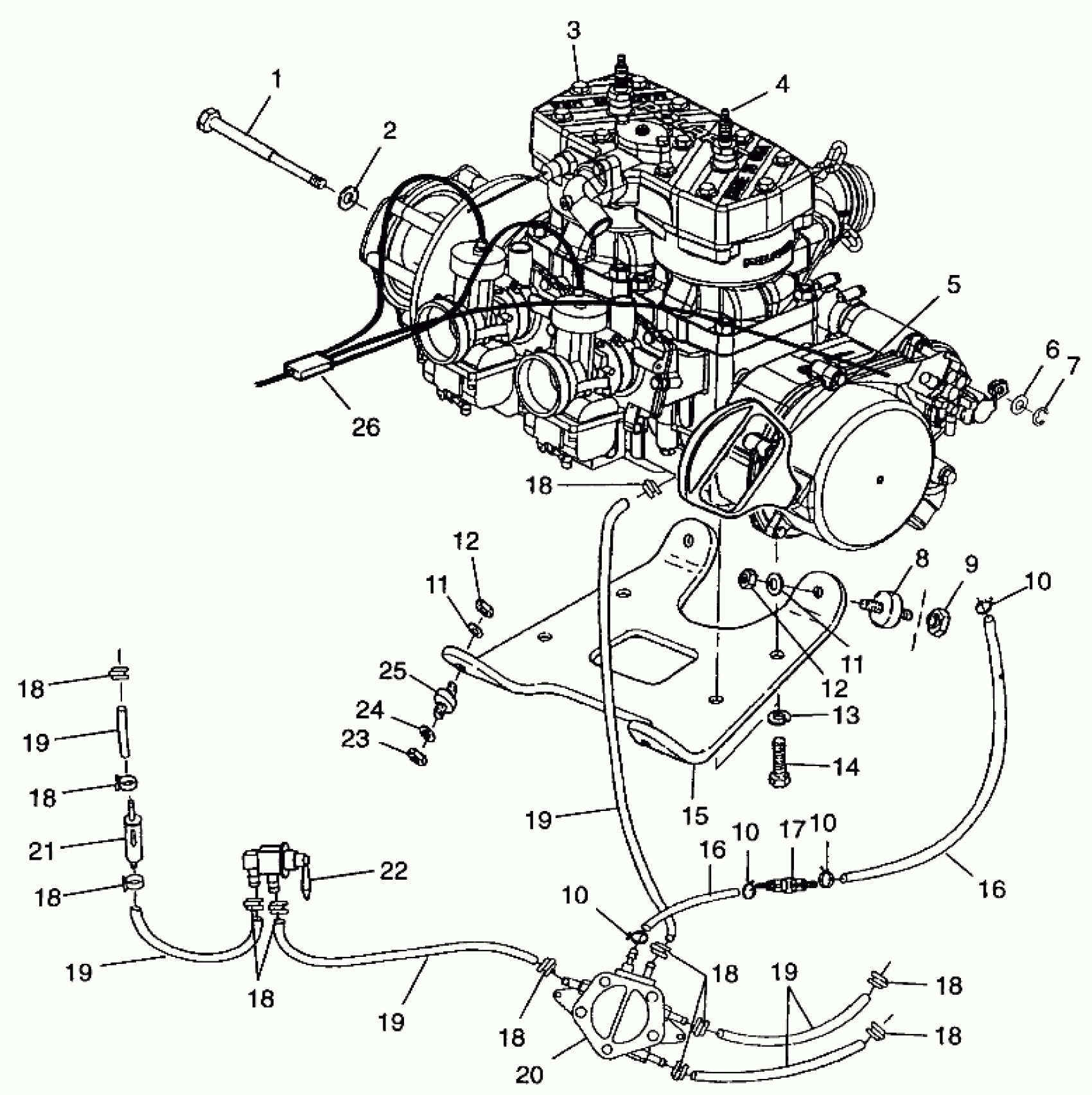 Polaris 700 RMK - 0970966 ENGINE MOUNTING 700 RMK 0970966, 700 SKS 0970566 and EUROPEAN 700 SKS E970 (4938573857C003) Diagram