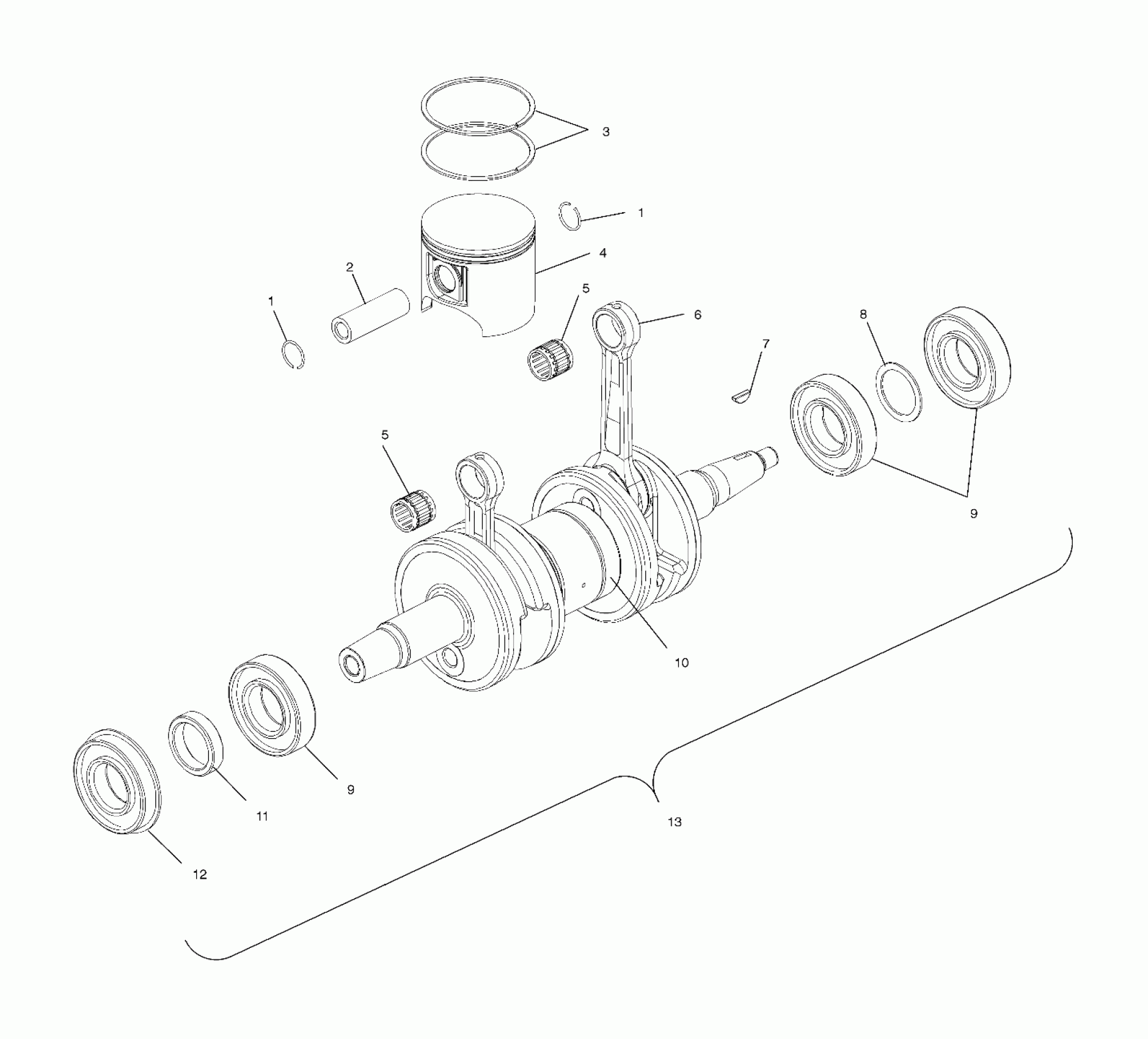 Polaris 700 RMK 136 - S02NJ7CS PISTON and CRANKSHAFT - S02NJ7CS/CSA (4970567056C07) Diagram