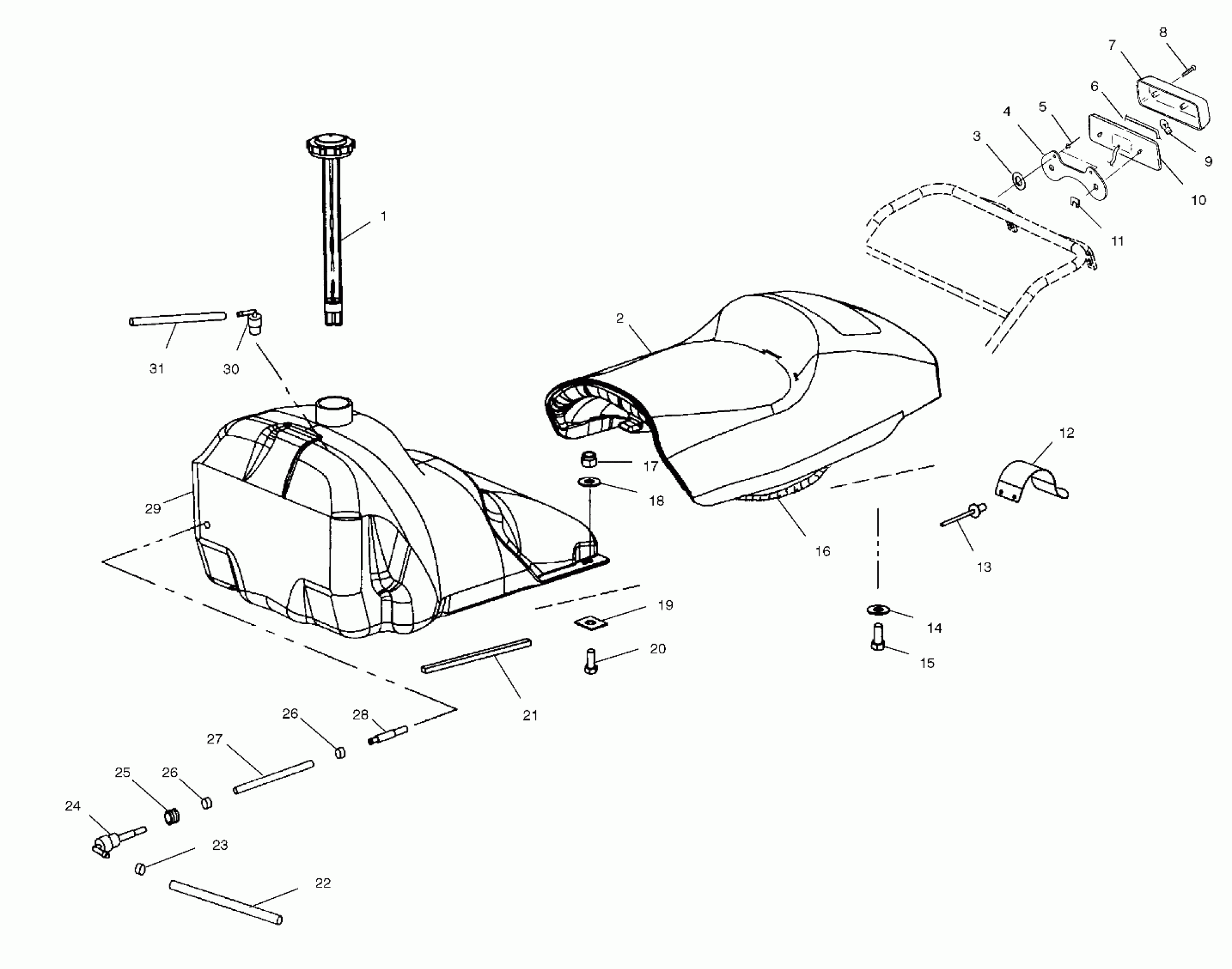 Polaris 700 RMK - S00SR7AS SEAT AND GAS TANK - S00SR7ASA (4954105410a006) Diagram