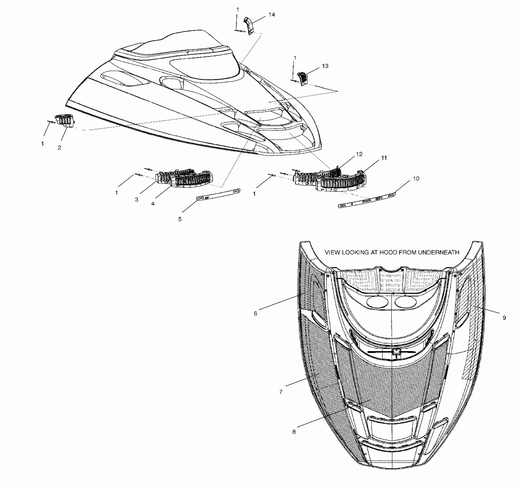 Polaris 700 XC SP F/O - S02NP7CS HOOD FOAM/FOIL - S02NP7CS/S02NE7CS (4973447344A09) Diagram