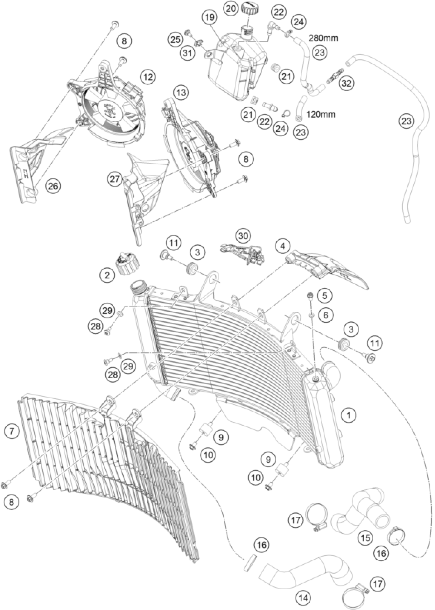 KTM 790 ADVENTURE, black 2023 COOLING SYSTEM Diagram