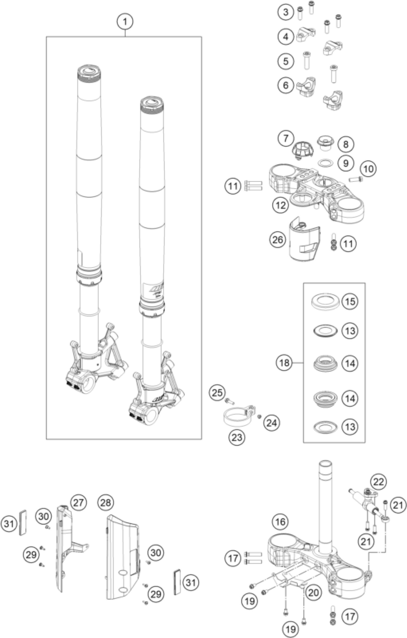 FRONT FORK, TRIPLE CLAMP