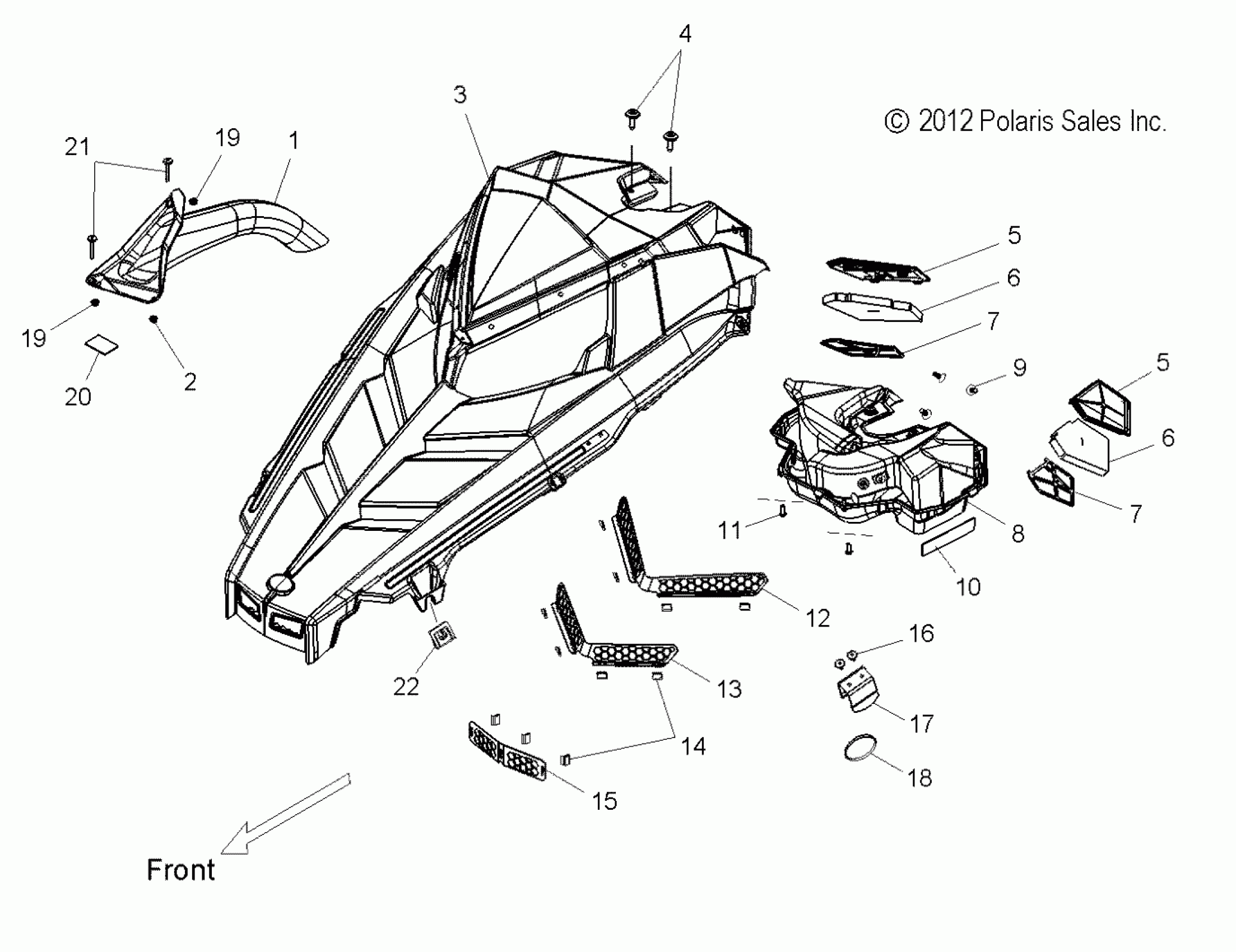 Polaris 800 INDY SP ALL OPTIONS (R02) - S16CP8 BODY, HOOD ASM. - S16CP8 ALL OPTIONS (49SNOWHOOD13SB) Diagram