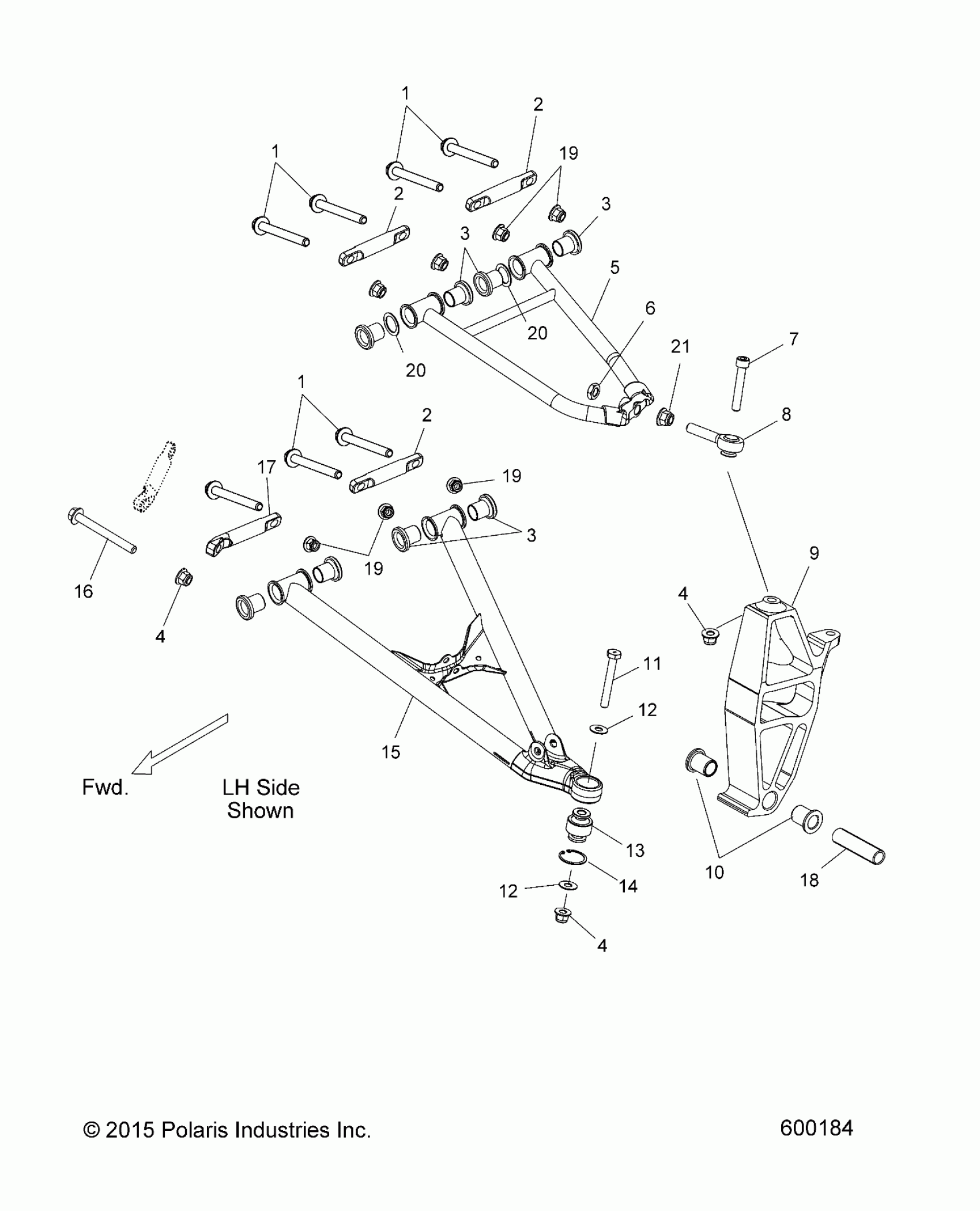 Polaris 800 RMK 155 ALL OPTIONS (R02) - S16CM8 SUSPENSION, CONTROL ARMS and SPINDLE - S16CM8 ALL OPTIONS (600184) Diagram