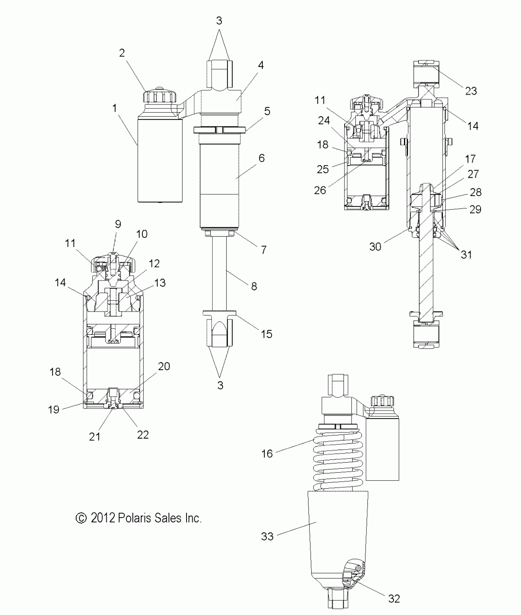 Polaris 800 SWITCHBACK ADVENTURE - S14BA8GSL/GEL SUSPENSION, SHOCK, FRONT - S14BA8GSL/GEL (49SNOWSHOCKFRONT7043828) Diagram