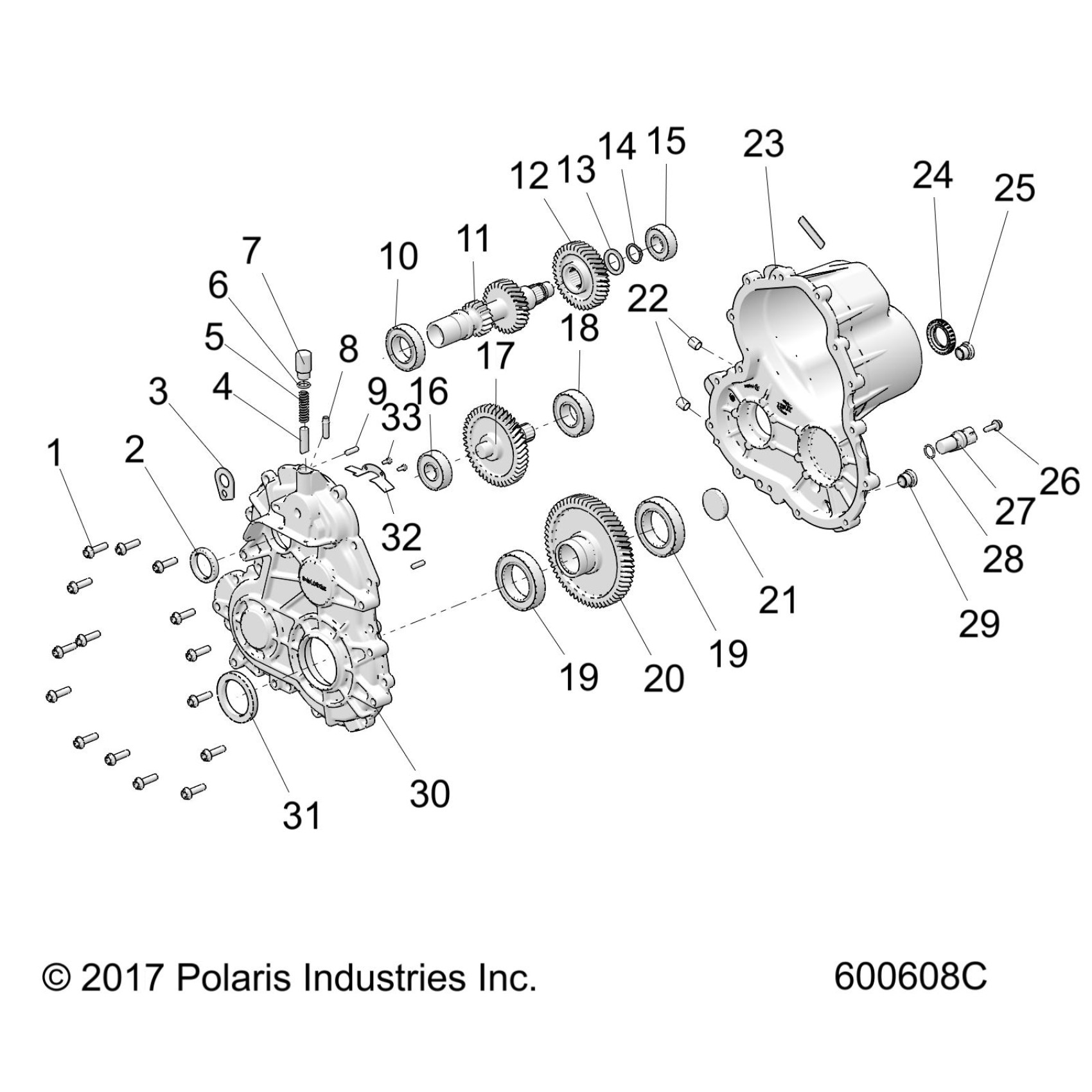 Polaris 800 TITAN SP/ADVENTURE/XC ALL OPTIONS (R04) - S19FJB8/FJE8/FJP8 DRIVE TRAIN, GEARCASE ASM 1 - S19FJB8/FJE8/FJP8 ALL OPTIONS (600608C) Diagram