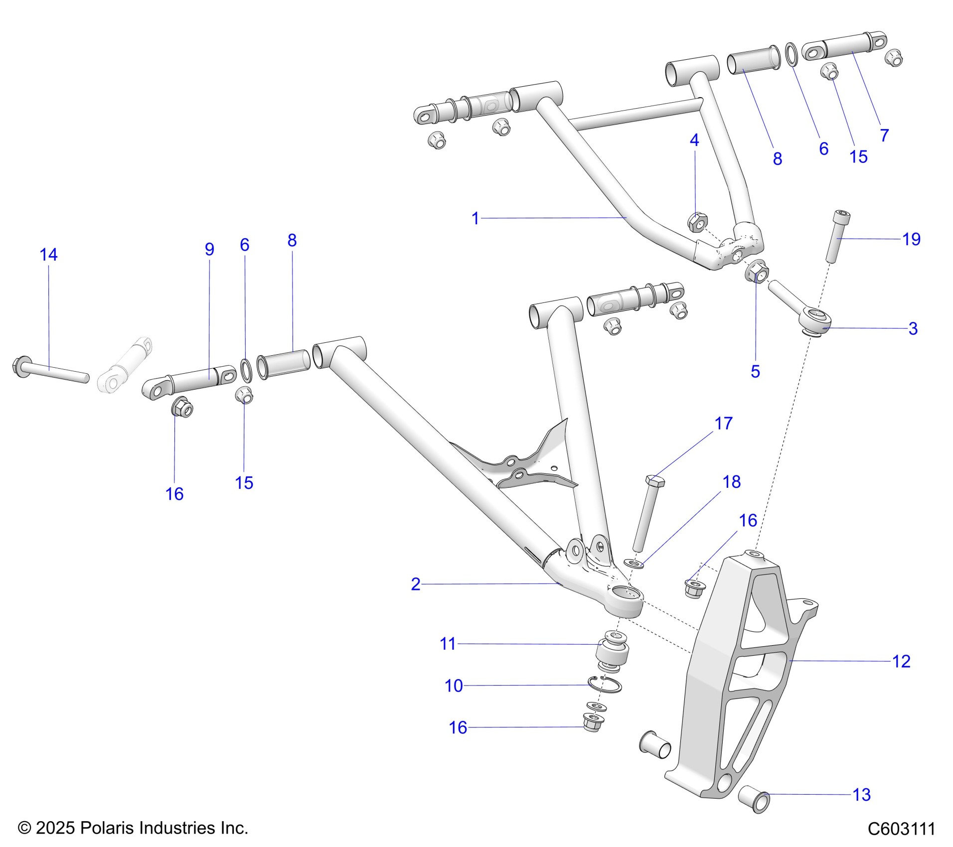 Polaris 800 TITAN SP/ADVENTURE/XC ALL OPTIONS (R04) - S19FJB8/FJE8/FJP8 SUSPENSION, CONTROL ARMS and SPINDLE - S19FJB8/FJE8/FJP8 ALL OPTIONS (C603111) Diagram