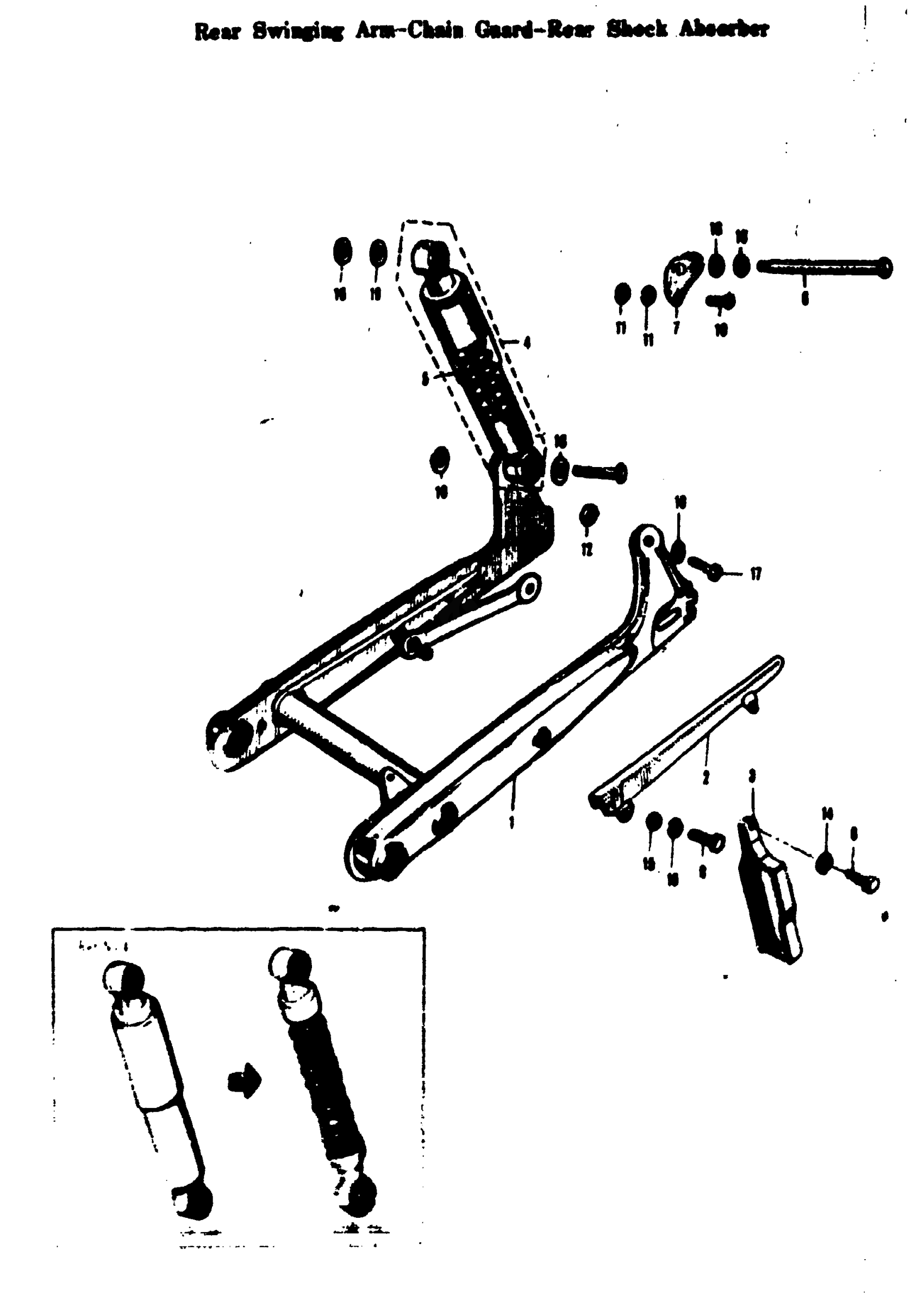 REAR SWINGING ARM - CHAIN GUARD - REAR SHOCK ABSERBER
