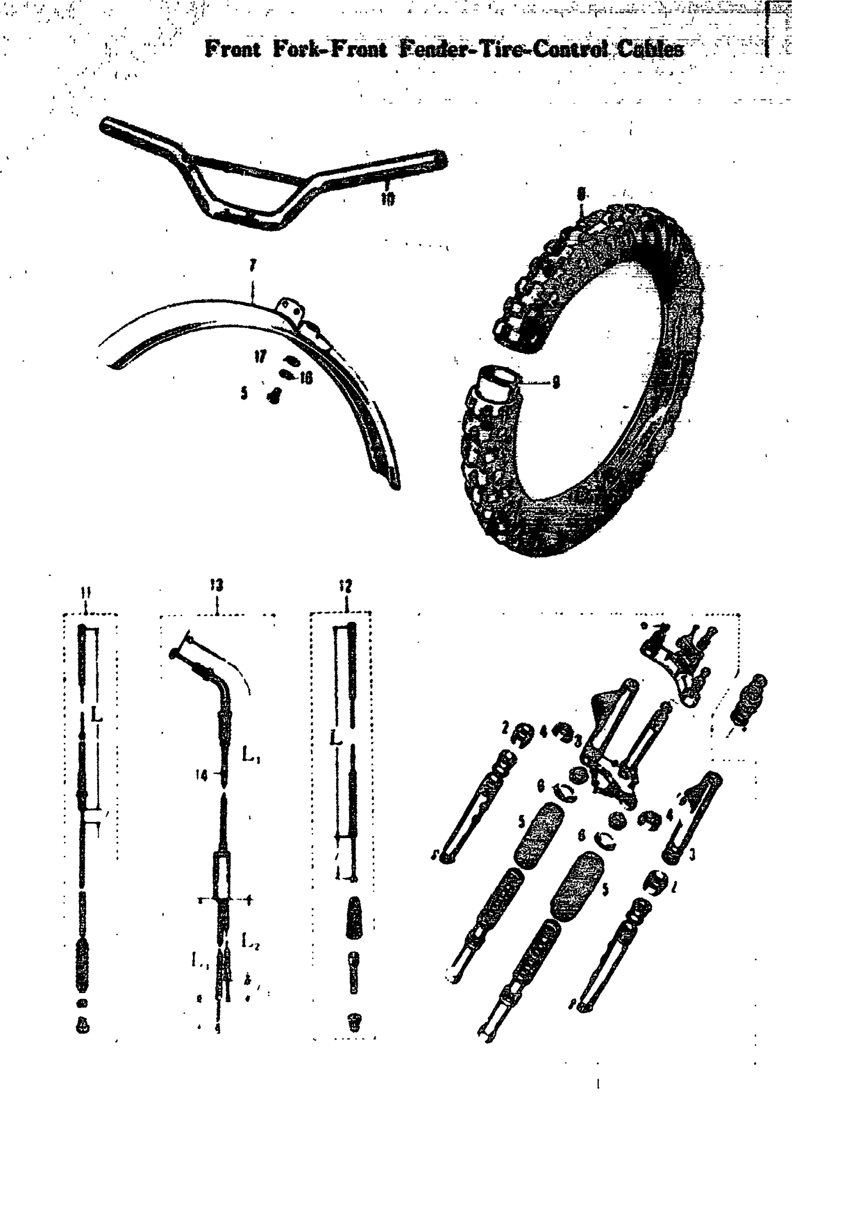 FRONT FORK-FRONT FENDER-TIRE-CONTROL CABLES