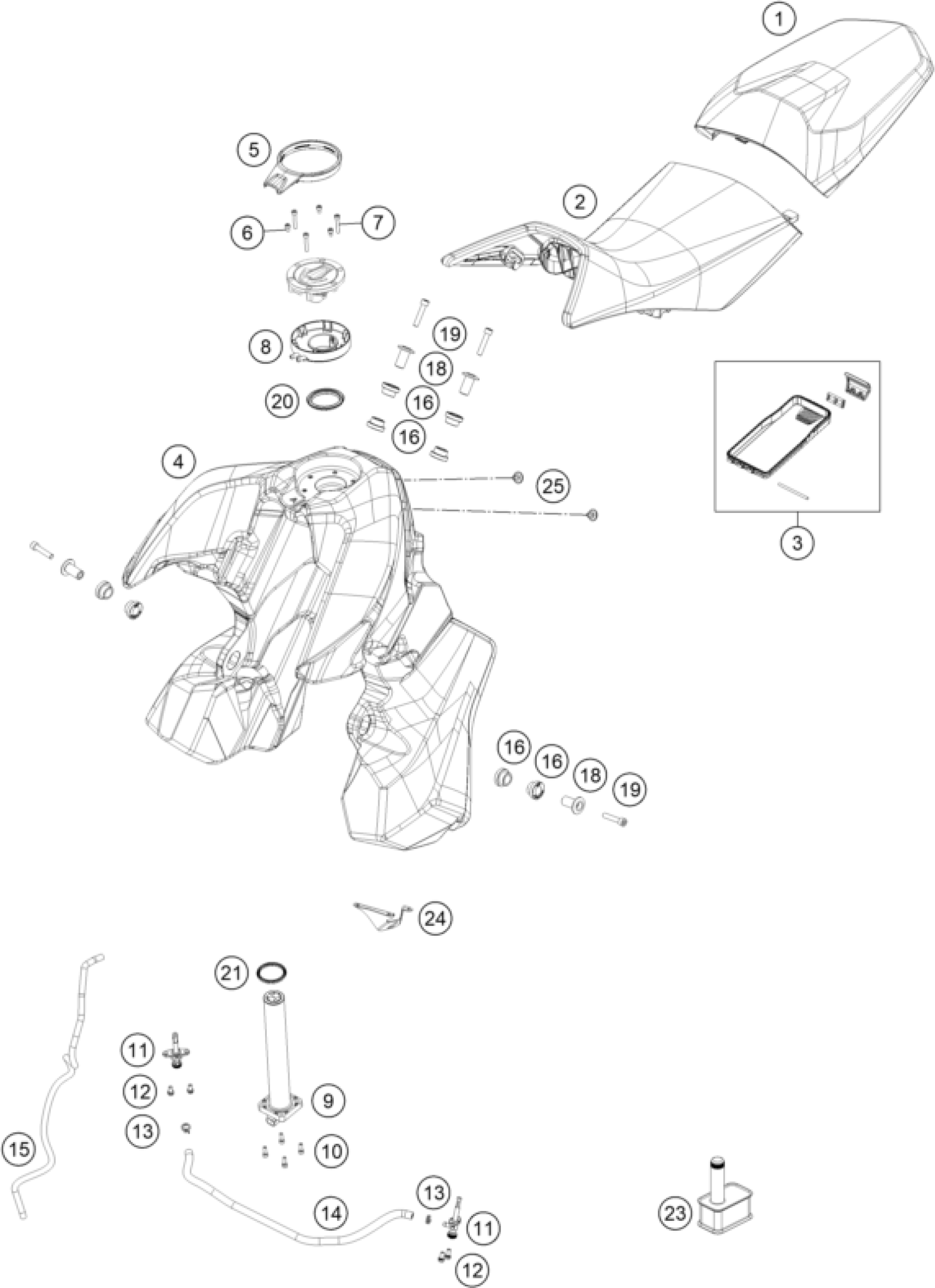 KTM 890 ADVENTURE, black 2021 TANK, SEAT Diagram