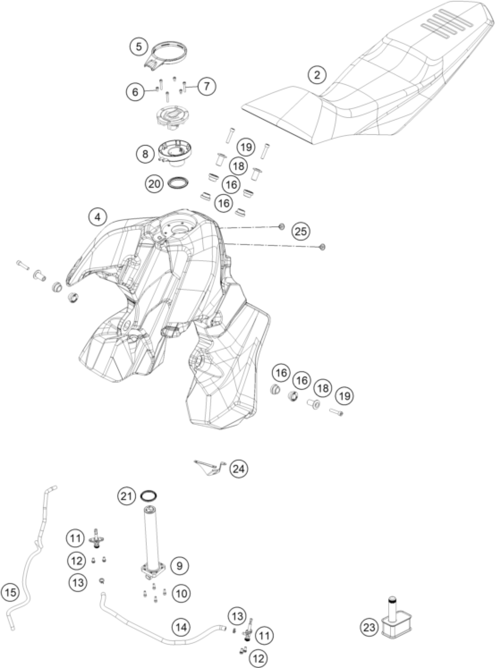 KTM 890 ADVENTURE R 2025 TANK, SEAT Diagram