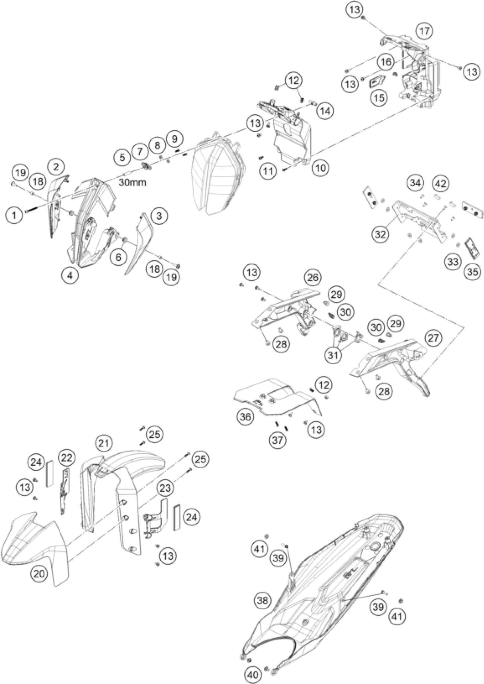 KTM 890 Duke R 2020 MASK, FENDERS Diagram