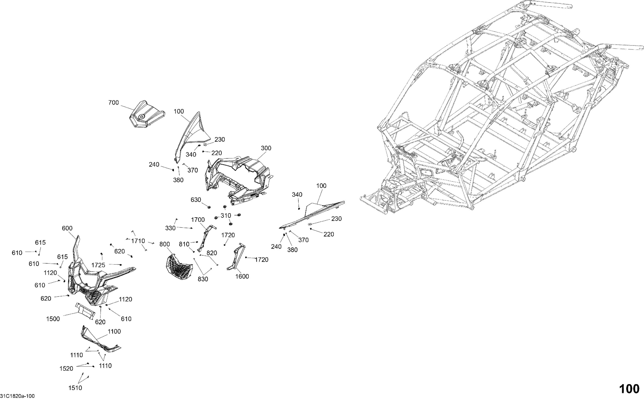 Can-Am Maverick X3 MAX Turbo - STD, 2018 Body Parts - Hyper Silver - Package STD - Front Section Diagram