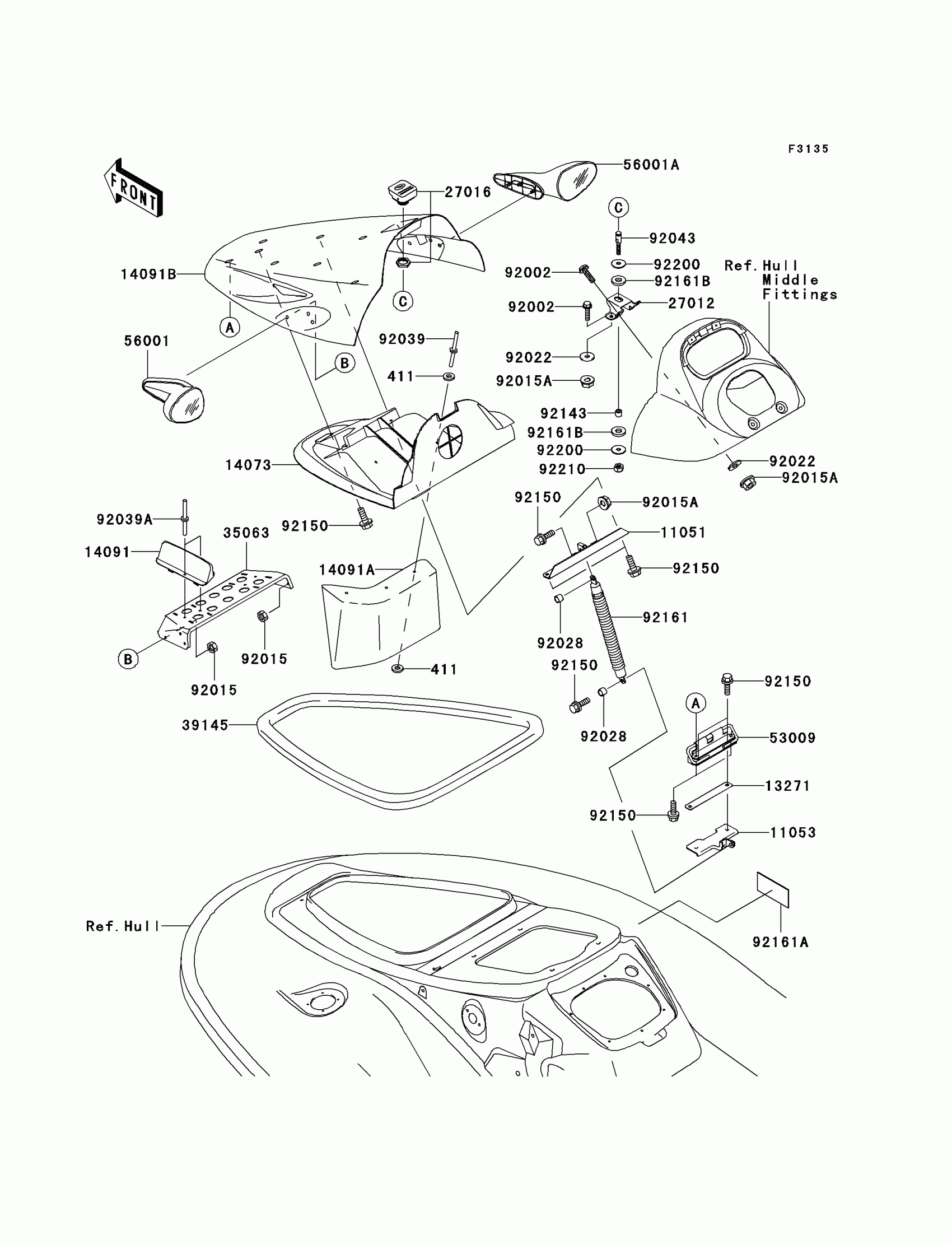 Kawasaki 900 STX Hull Front Fittings Diagram