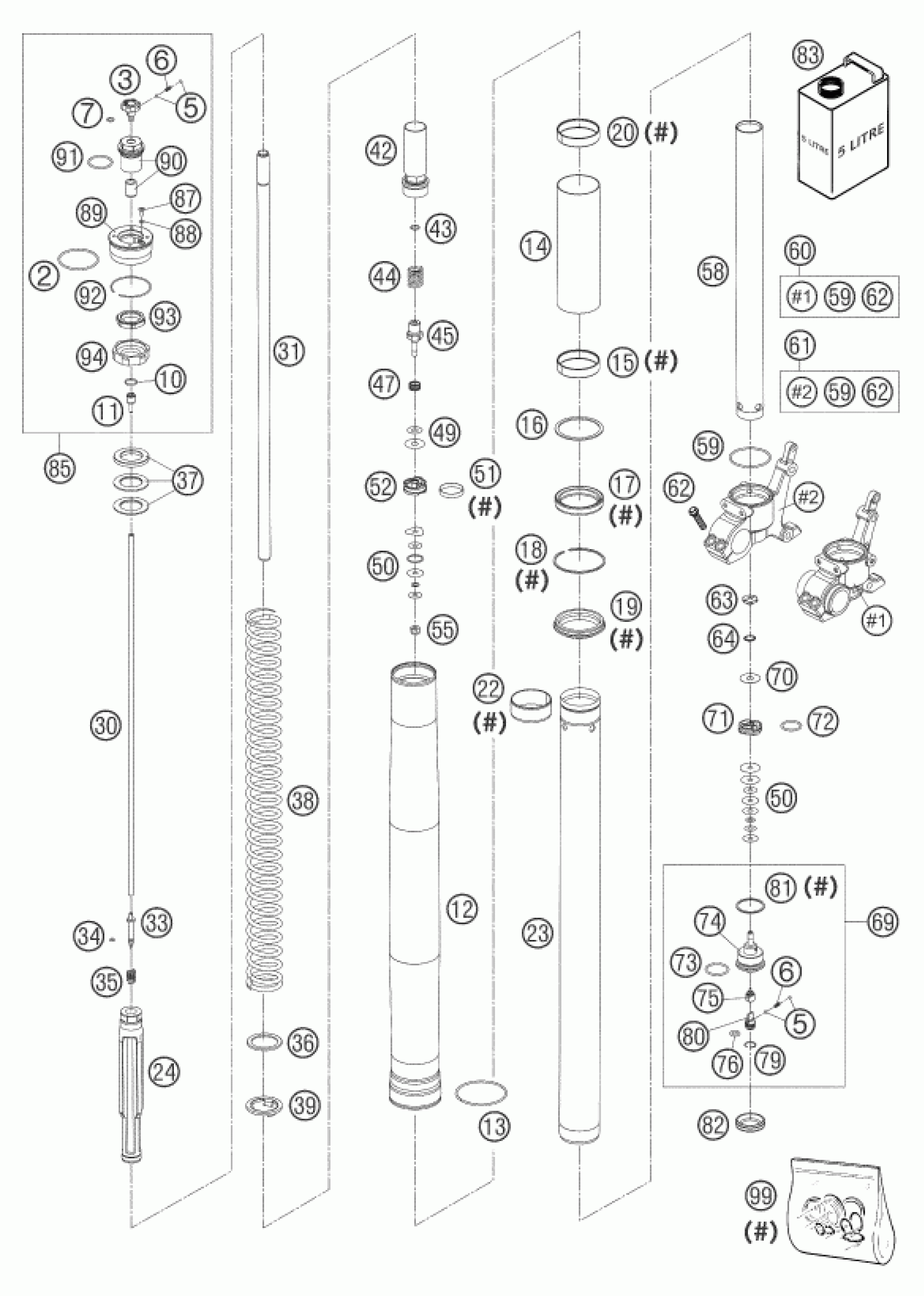 KTM 950 ADVENTURE BLACK LOW 2004 FRONT FORK DISASSEMBLED Diagram