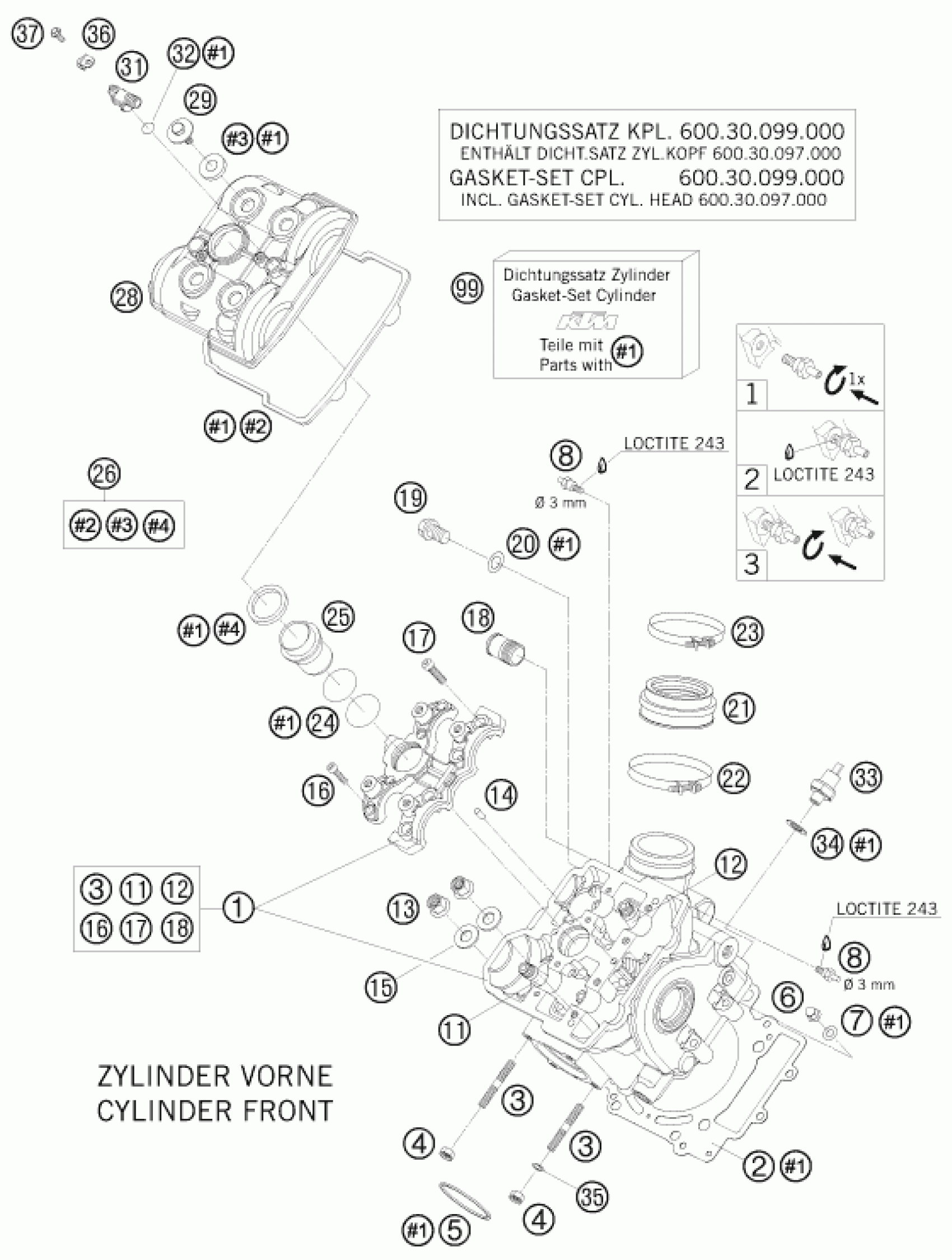 KTM 950 SUPER ENDURO R 2008 CYLINDER HEAD FRONT Diagram