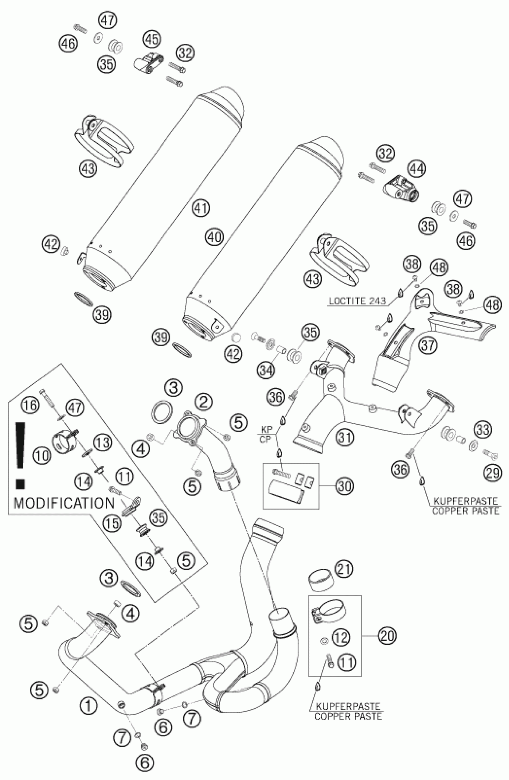 KTM 950 SUPERMOTO BLACK 2005 EXHAUST SYSTEM Diagram