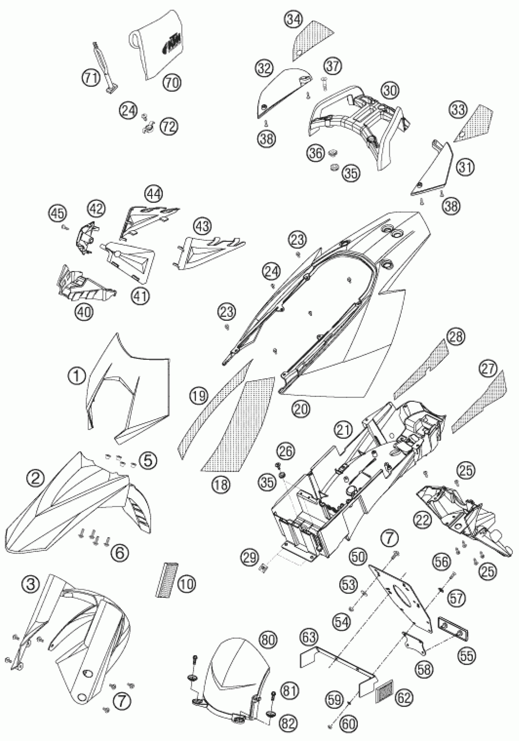 KTM 950 SUPERMOTO BLACK 2007 MASK, FENDERS Diagram