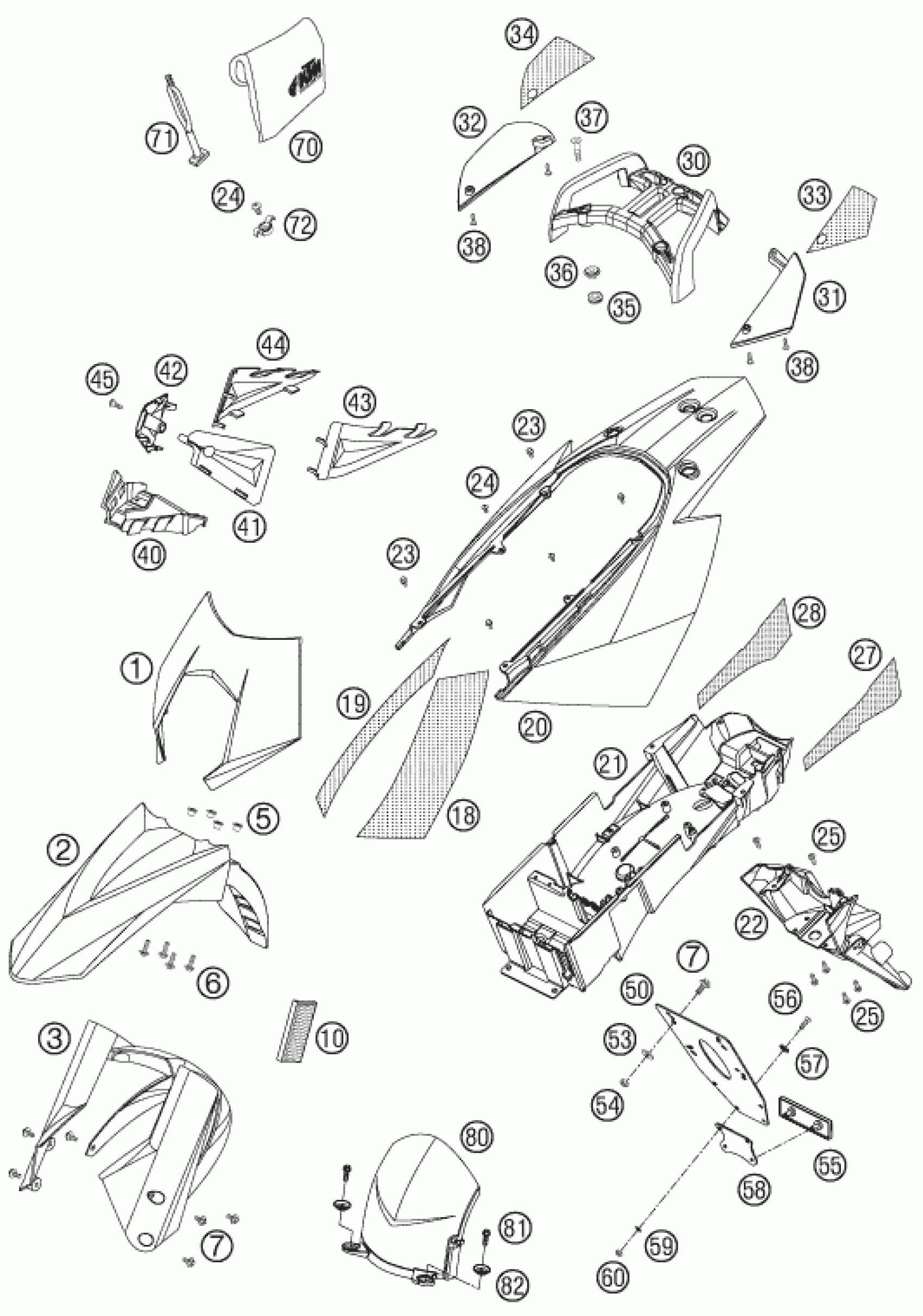 KTM 950 SUPERMOTO ORANGE 07 <2007 MASK, FENDERS Diagram