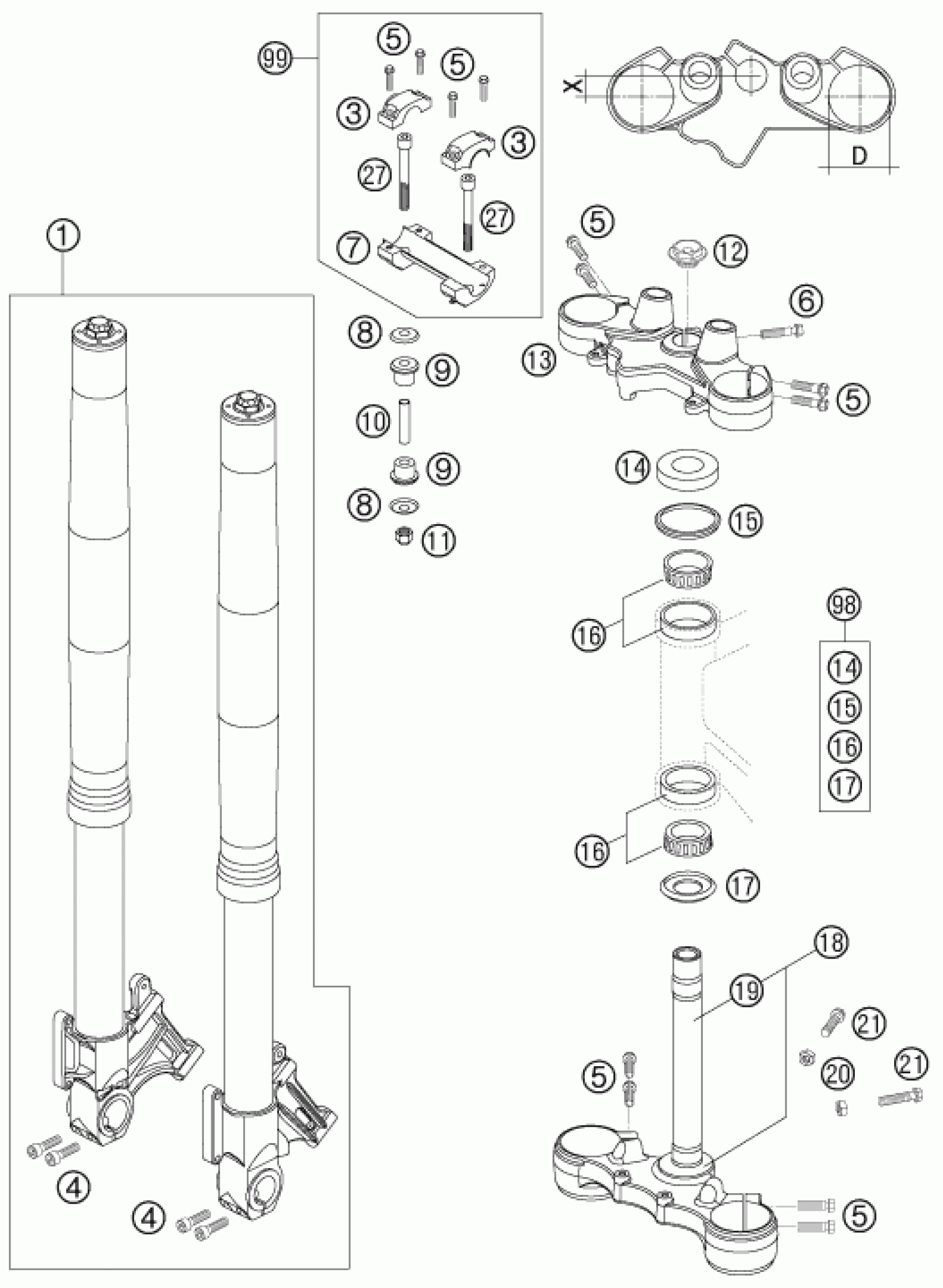 KTM 950 SUPERMOTO R 2007 FRONT FORK, TRIPLE CLAMP Diagram