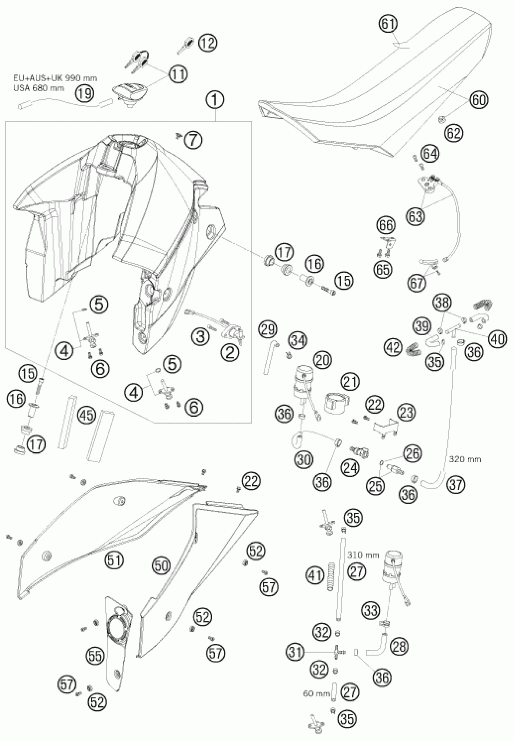 KTM 950 SUPERMOTO R 2008 TANK, SEAT Diagram