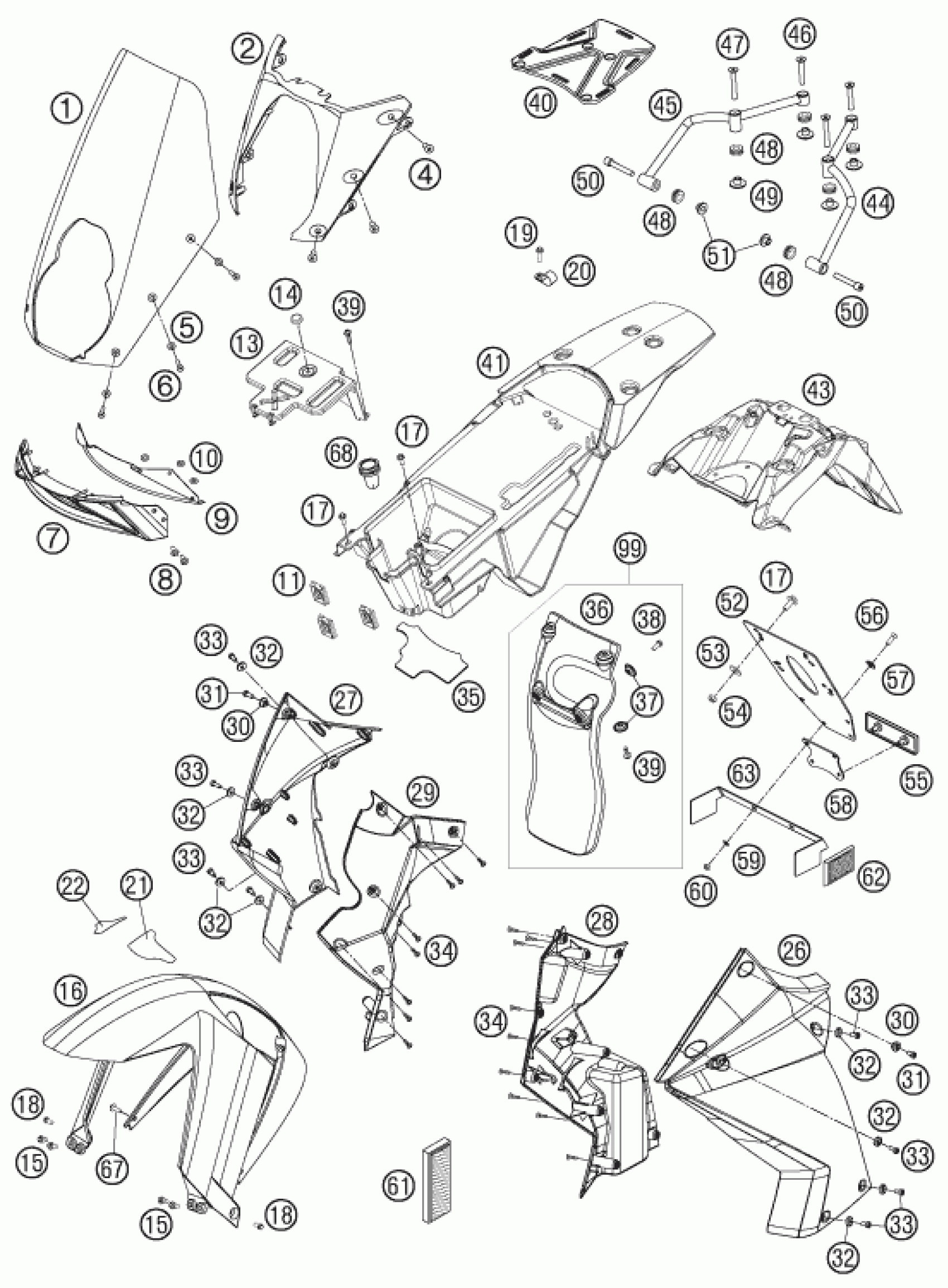 KTM 990 ADVENTURE ORANGE ABS 07 <2007 MASK, FENDERS Diagram