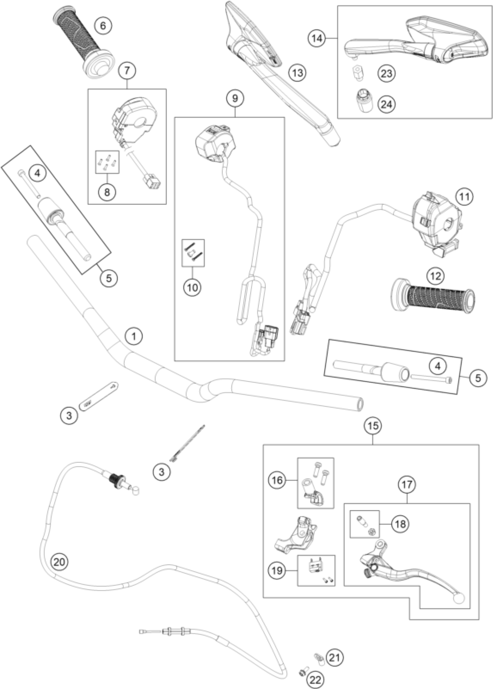 KTM 990 DUKE, black 2024 HANDLEBAR, CONTROLS Diagram